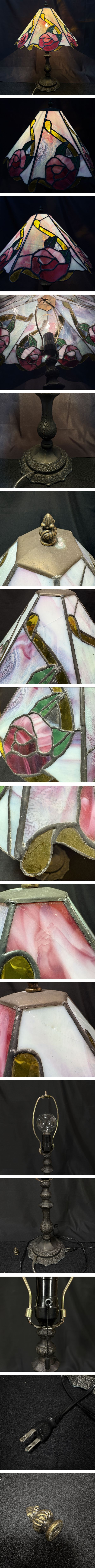 | 【輝屋】ステンドグラス テーブルランプ 薔薇 バラ柄 照明 飾り電灯 ビンテージ 全長約50cm 点灯確認済 | ||