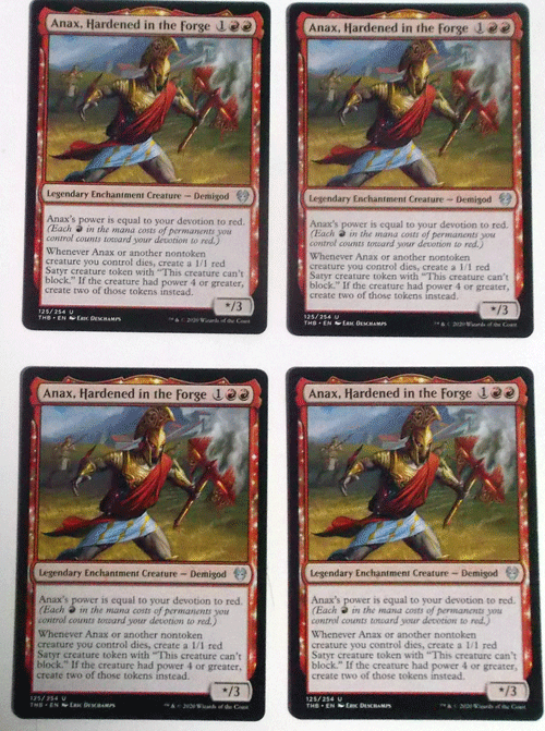 MTG英語/4枚セット/Anax,Hardened in the Forge(鍛冶で鍛えられしアナックス)/テーロス還魂記/アンコモンです。中古品扱いですので、神経質な方、美品をお求めの方は入札をご遠慮ください。