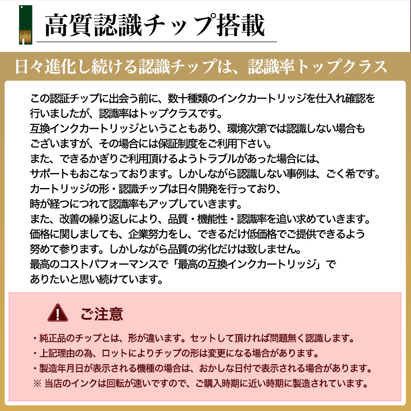 | 特徴 | ICチップ付・残量表示可能(一部機種除く) |