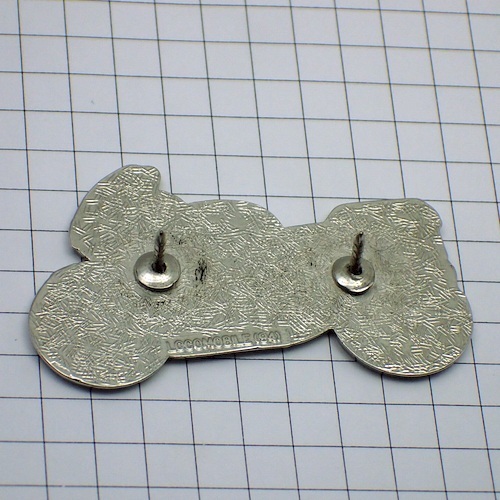 | ピンズは、裏側に針が付いており、金属の留め金でとめるようになっています。 留め金が付属しています。新品の留め金も一緒に発送いたします。 | |