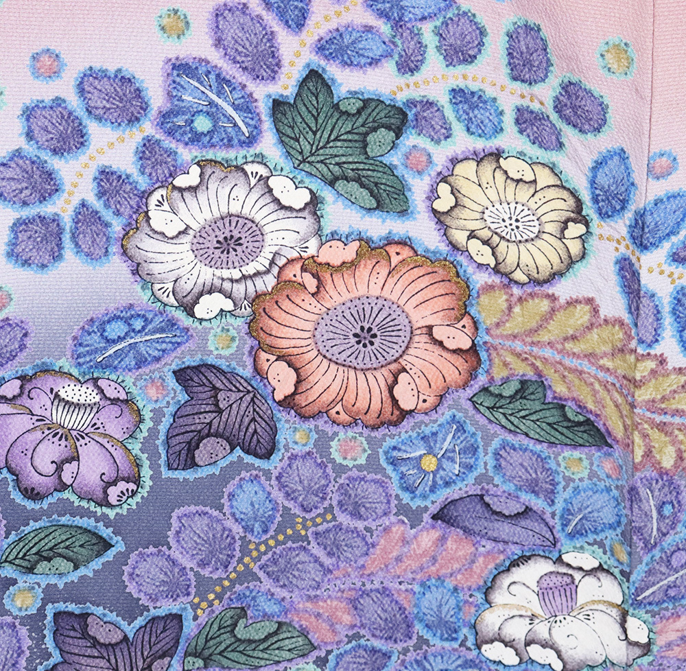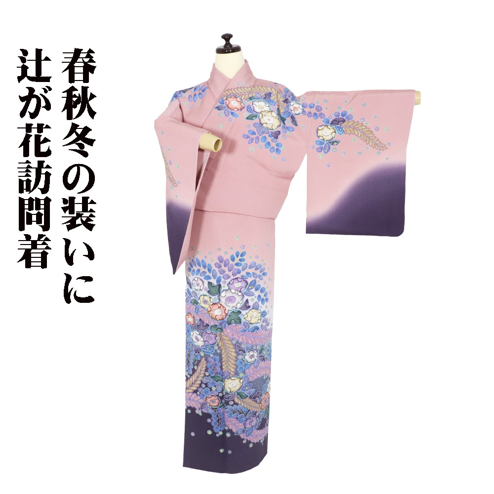 | 色・柄 | 辻が花訪問着 袷 丹後縮緬地 ピンクかかった紫(薄紅梅色)・紫(葡萄色)・暈し地 絞り・辻が花 (写真では上手く色が出ない場合があります。ご了承下さい) |