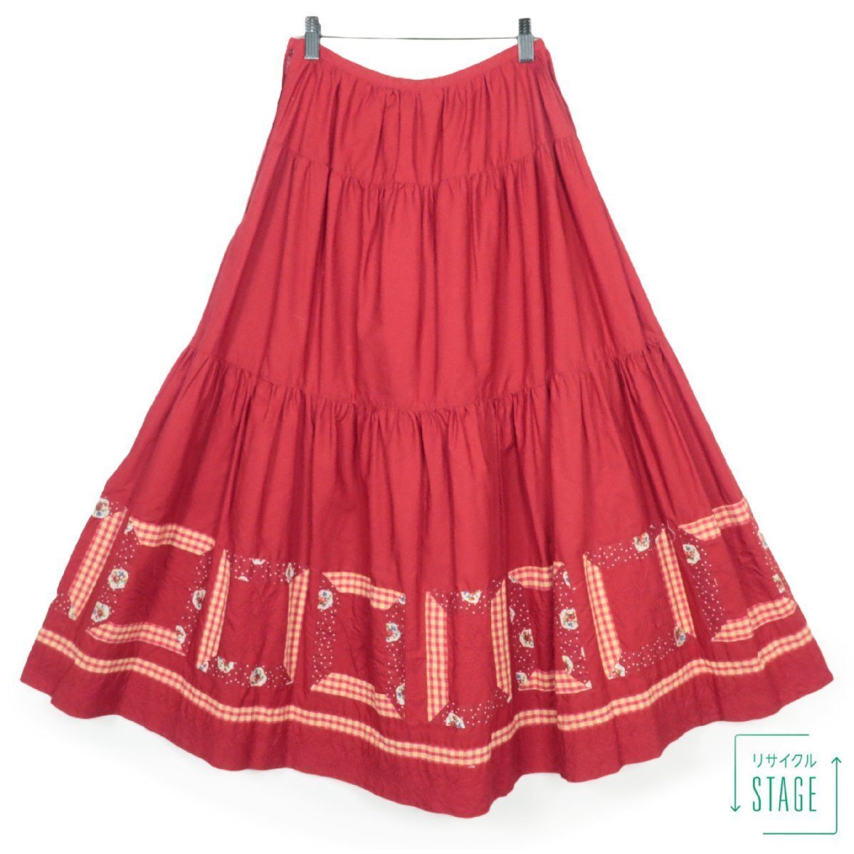 | 商品説明 | 【実寸約】ウエスト64 丈86(cm) 【サイズ表記】M 【素材】綿100 【状態】普通の使用感のあるお品物 長期保管のため、全体的に薄汚れ感 裾のパッチワーク部分に小さなひっかけあり。 【定価】紙タグあり 22800円 【デザイン】 レッド系 コットン100%素材のロングフレアスカートです。 真っ赤な色が印象的でギャザーたっぷりの素敵なお品です。 チェックやフラワードット生地のパッチワークや刺しゅうなどディティールまでこだわりの1枚です。 様々な大人ロマンティックコーデに重宝する優秀アイテムです。 サイドファスナー&ボタン仕様。 |