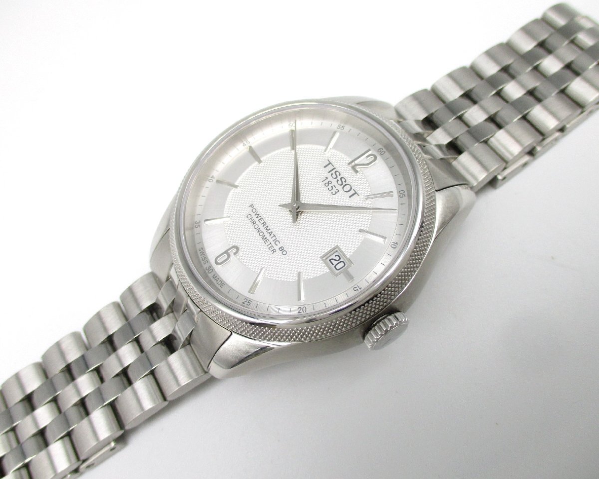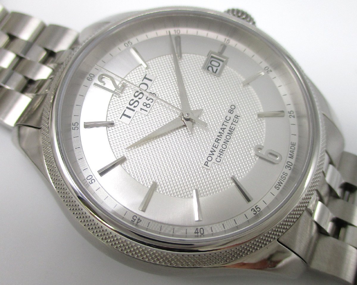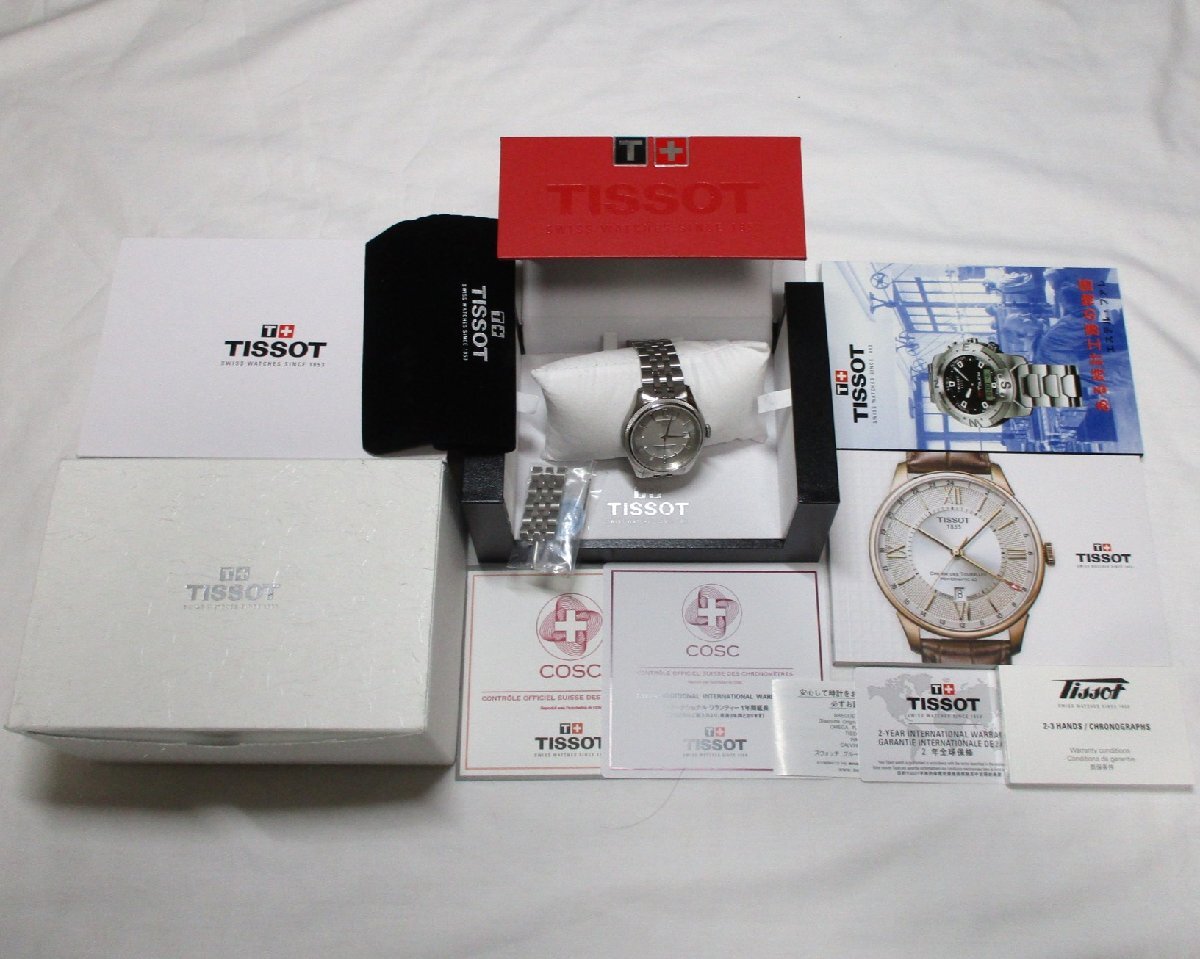 | TISSOT ティソ BALLADE バラード オートマティック メンズ・自動巻・COSC認定クロノメーター・80時間パワーリザーブ・SS・50m防水仕様・サファイヤクリスタル・シースルーバック 購入店:BEST SHINJUKU 購入日:2022.6.23 【型番】T108.408.11.037.00 (T108408A) 【およそのサイズ】ケース径:40.8mm 腕周り:現状は17cm位で他に余りコマが5コマ(計3.7cm位)あります。 【状態】ガラスは無傷です。他部も傷感は非常に弱く、新品同様品レベルだと思います。 【精度レポート】日差(手巻・平置)を4日間計測したところ「+4,+5,+5,+6秒」でした。(保証値ではなく参考値とお思いください。) 【付属品】外箱(汚れ、切れ有)・内箱・ギャランティーカード・取扱説明書・スウォッチグループジャパン使用注意書・COSC認定クロノメーター証明書・余りコマ5・小冊子2 | ||||