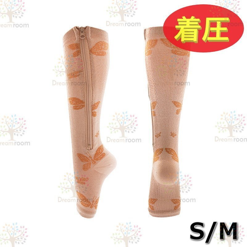ジップで簡単装着! 圧縮ソックス 【ベージュ バタフライ S/M】 サポーター スポーツ 圧縮 ジッパーソックス ジップソックス