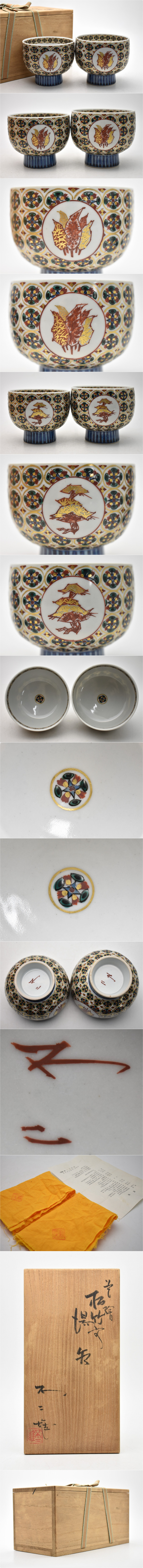 ★商品説明・詳細など★ ■九谷焼 北出不二雄 色絵松竹文 夫婦 湯呑 2客