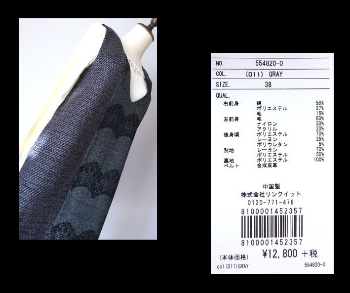 | 商品紹介 | ★表示サイズ…38 ★素材 右前身…綿58% ポリエステル27% 毛15% 左前身…毛50% ナイロン30% アクリル20% 後身頃…ポリエステル70% レーヨン25% ポリウレタン5% 別地…レーヨン70% ポリエステル30% 裏地衣…ポリエステル100% ベルト…合成皮革 ★(株)リンクイット ★中国製 ★お色…チャコールグレー ・裾両サイド21㎝スリット入り ・重量…470g ・定価…12800円+税 ★実寸(多少の誤差はご了承ください) 身幅:48㎝ 着丈:98㎝ ●土日祝日年末年始は発送できませんのでご了承ください。 ●画像の色合いは撮影環境、モニター環境により実物と若干異なる場合がございます。予めご了承ください。 まとめて取引は最初の落札から72時間が対象です。 最初の落札商品の取引ナビで同梱希望の旨をお知らせください |