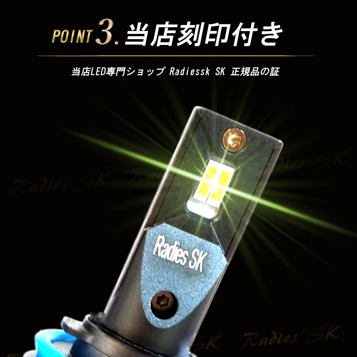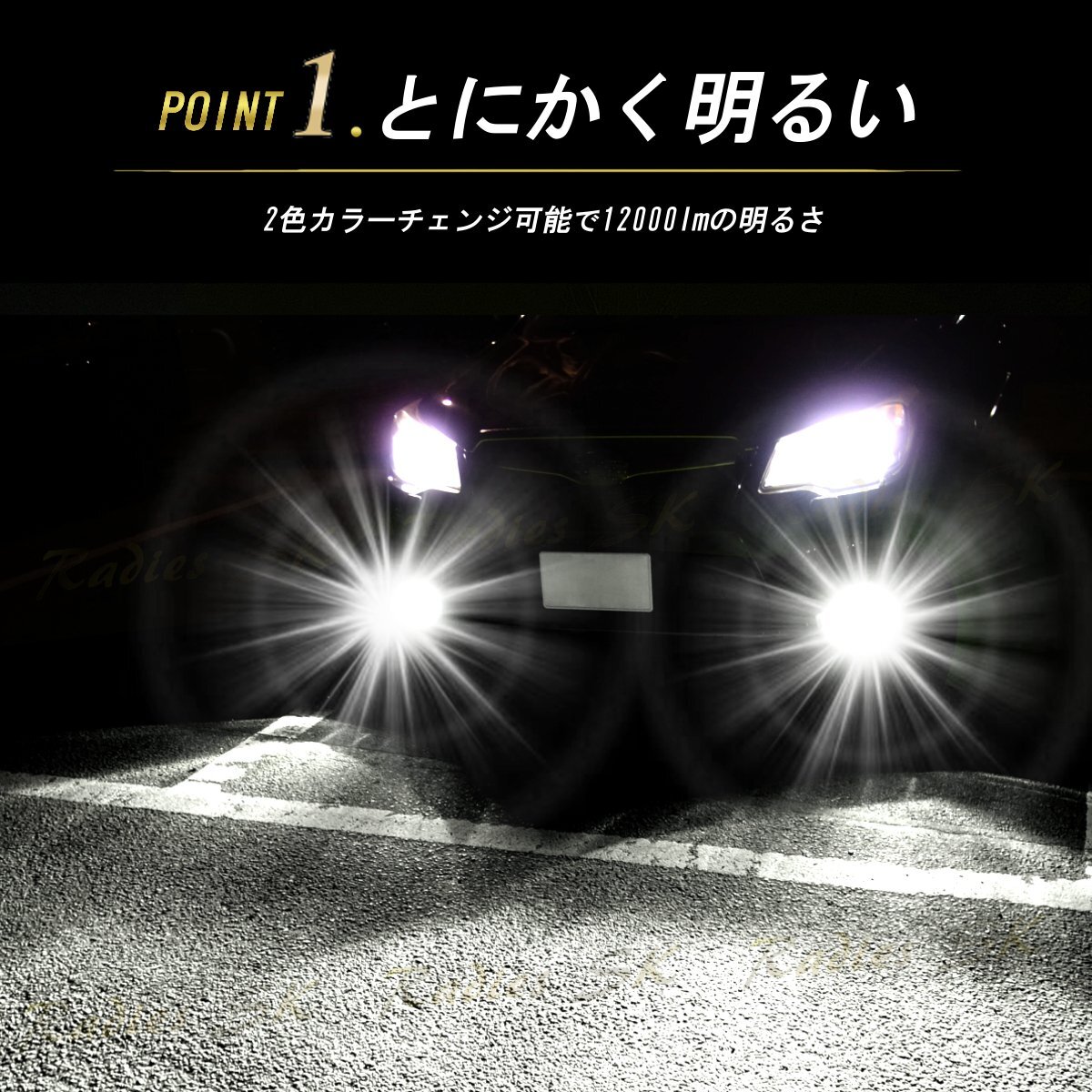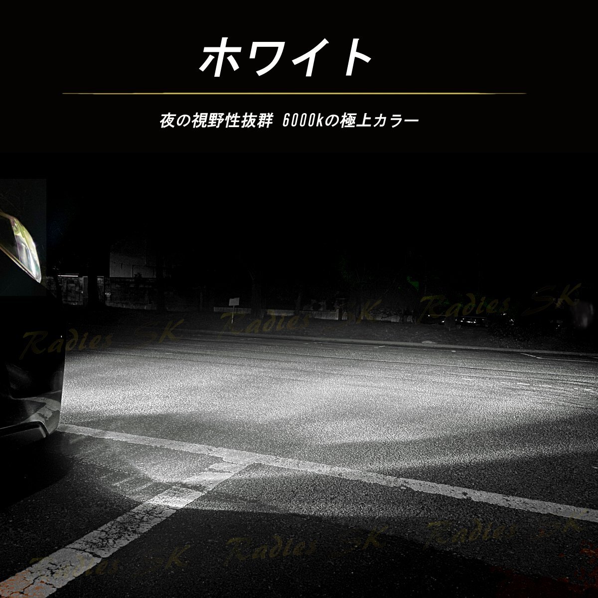 Radies SKの正規品であるこの製品は、刻印付きでその品質を保証。車内から簡単にカラーを切り替えることができるため、走行中のさまざまな状況や気分に応じて光の色を変えることが可能です。ホワイトはクリアな視界を提供し、グリーンレモンは個性的で鮮やかな光を放ちます。