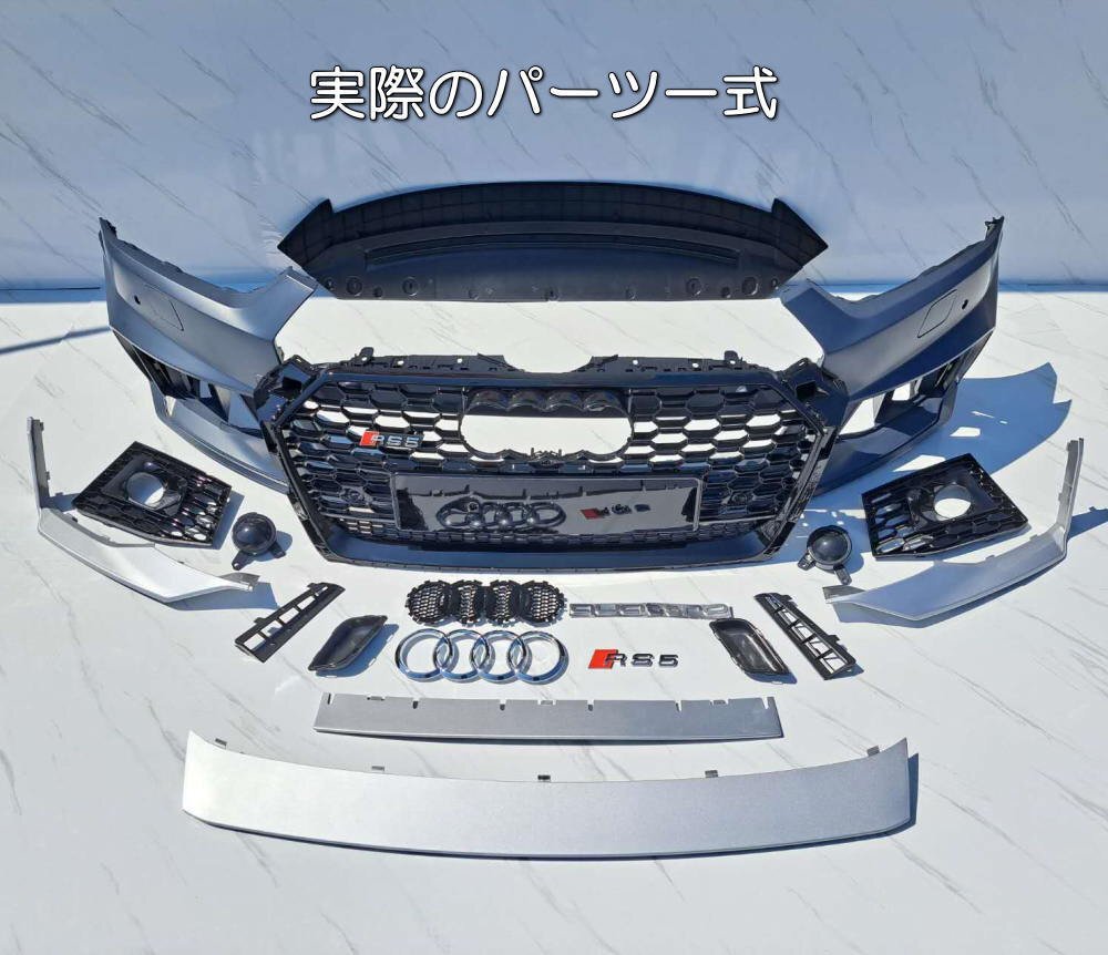 | 商品説明 | ☆新品・超激安即決!☆アウディ2016~A5/S5用☆RS5Lookウレタン製フロントバンパー&RSグリルset ☆新品・アウディ 2016~4G A5/S5用 RS5 Look ウレタン製フロントバンパー&RSグリル 付属品付き! ☆安心の国内在庫所有&国内発送! フロントバンパーに関しましては、よく有るセンター繋ぎ合わせ物では無く、良質ウレタン型取り1本物です 【適合年式 モデルグレード】 【年式】 2016~2020 【モデル、グレード】 アウディ A5 S5 RS5 RSタイプのフロントバンパーとグリルのセットです カブリオレ・スポーツバック等、全てのグレードに適合します 【商品セット内容】 ・RS5 Look フロントバンパー ウレタン製 ・RS5 Look ラジエーターグリル(枠・メッシュ部分共ブラッククリア塗装済) ・フロント センター リップスポイラー(シルバー塗装済み) ※画像別売アンダーリップスポイラー別途¥21000-で装着可能です※ ・左右クーリングエアグリル(フォググリル) ・ウォッシャーカバー ・牽引フックカバー ・アンダーカバー ・アウディマーク ※フロントフルセットです、ナンバープレート台座のみ純正移植お願いいたします。 カスタムパーツの装着で愛車が一変致します |