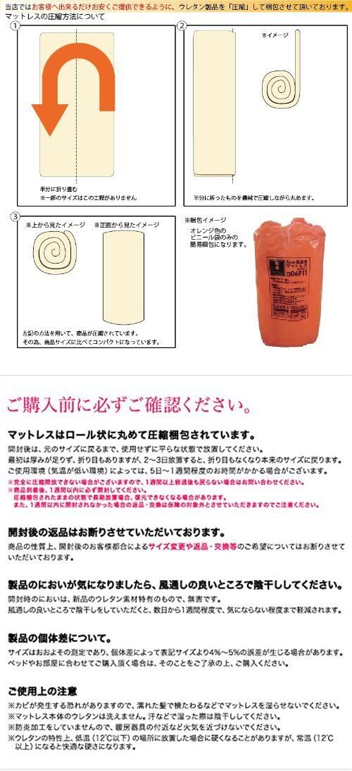 ■材質 マットレス本体 : 高反発ウレタン(密度27kg/m3)