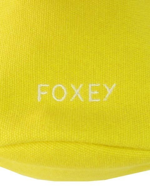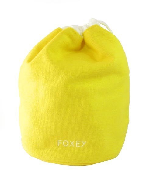 | 華やかな黄色のポーチ。FOXEYのロゴ刺繍がはいっています。バッグ内のポーチにおすすめです。内側にはメッシュのオープンポーチが3か所あります。フォクシーのノベルティになります。 |