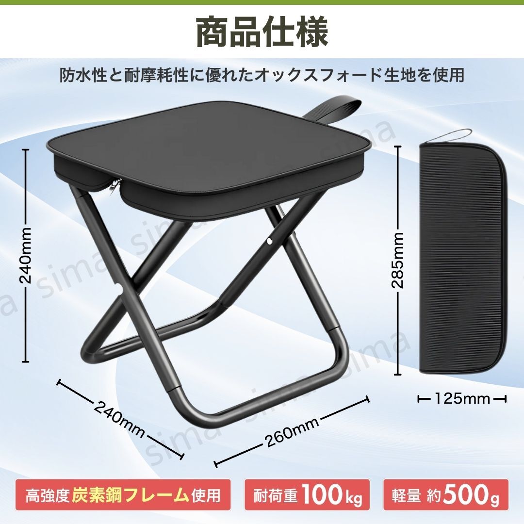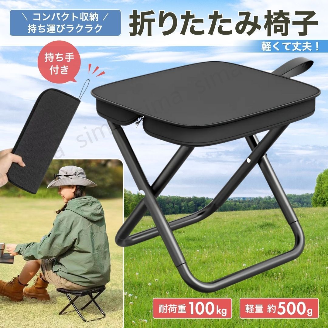 | 折りたたみ椅子 チェア コンパクト 軽量 小型 アウトドア キャンプ 釣り 運動会 旅行 フェス 登山 ピクニック 携帯 一体型 黒 ブラック |
