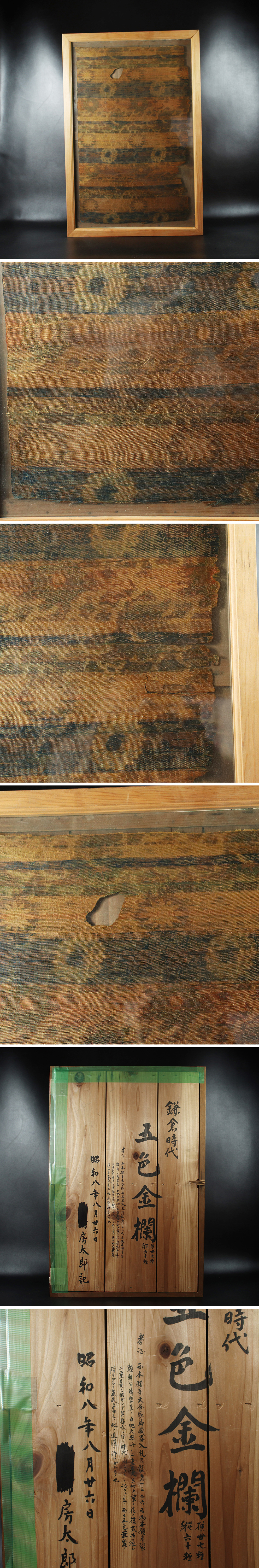 また経緯の組織の明瞭さ、金糸の撚り・据え方から見ても鎌倉期宋元系金襴の典型であり、