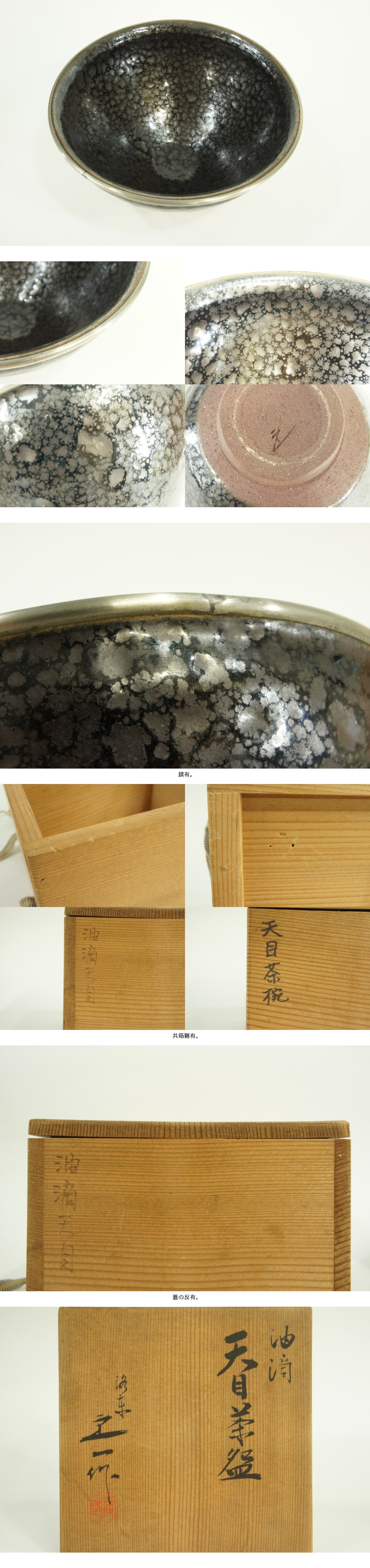 ●京焼・清水焼 桶谷定一 油滴天目茶碗 覆輪 傷や汚れ有 共箱 茶道具