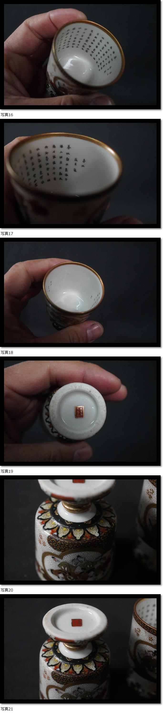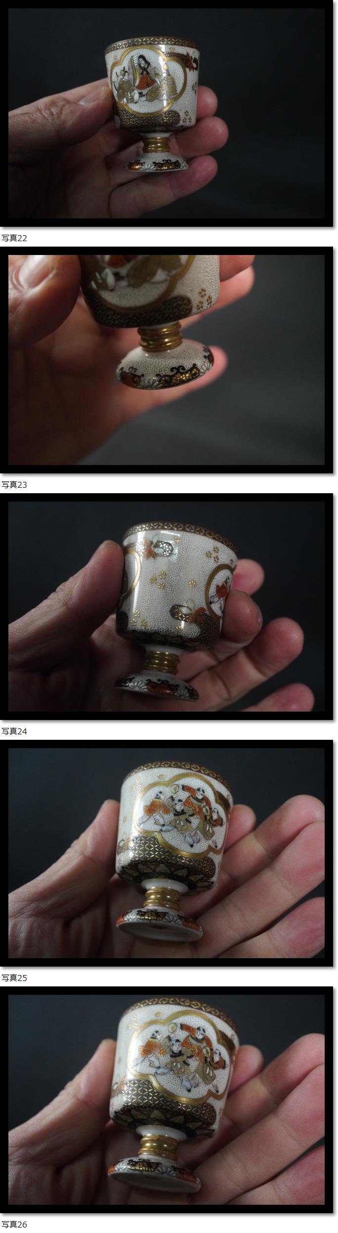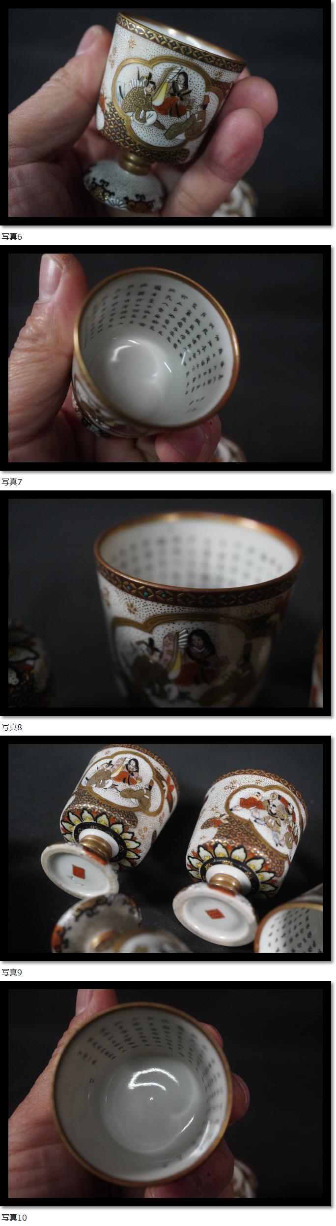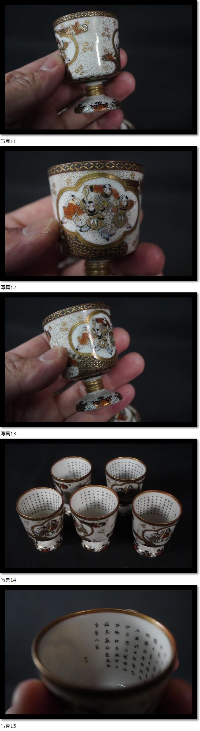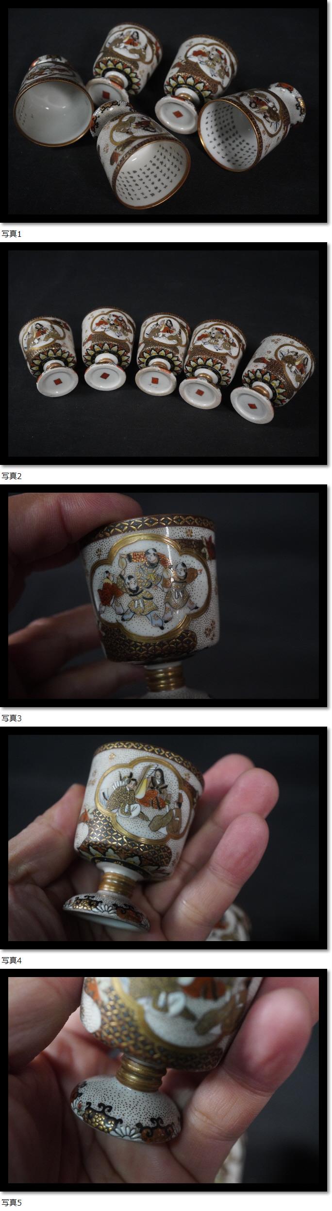 | 5客セット 手描き 大日本九谷製 明治時代 馬上盃 酒器 茶器 煎茶道具 唐子 金彩赤絵 青粒手 |