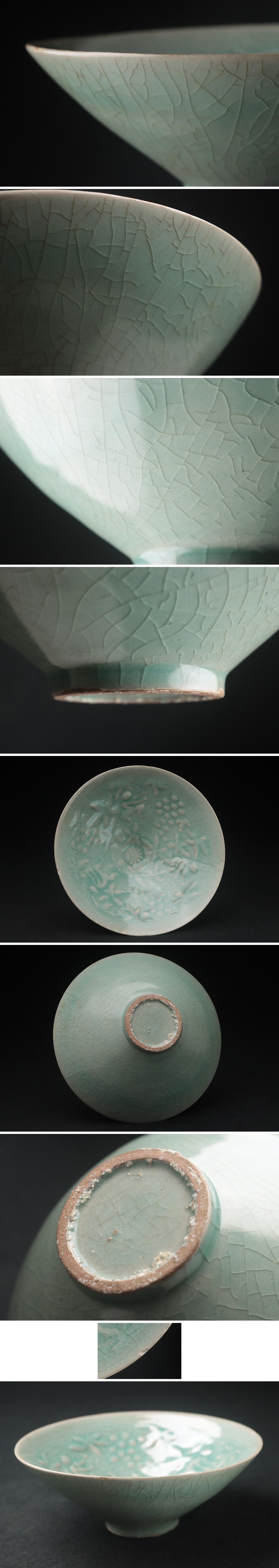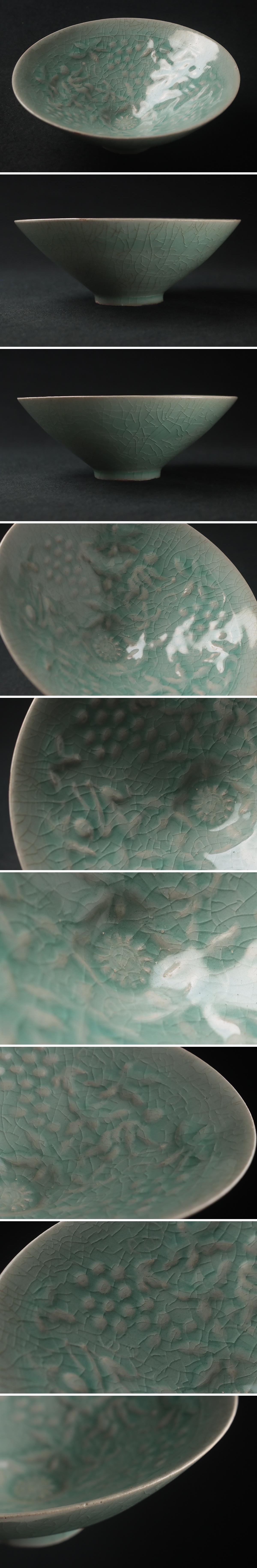| ◆ 朝鮮美術 高麗 青磁陽刻 葡萄文 茶碗・高麗青磁鉢 径16.5cm・青釉刻葡萄紋斗笠碗 朝鮮古美術 ◆