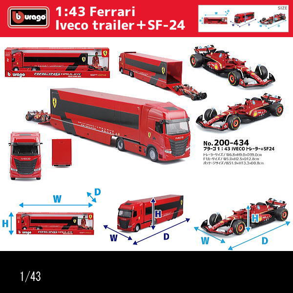 | 商品名 | 1/43フェラーリ/IVECOトレーラー/F1カー(SF-24)搭載/RACING HAULER/ブラーゴ/BURAGO/ダイキャストミニカー |