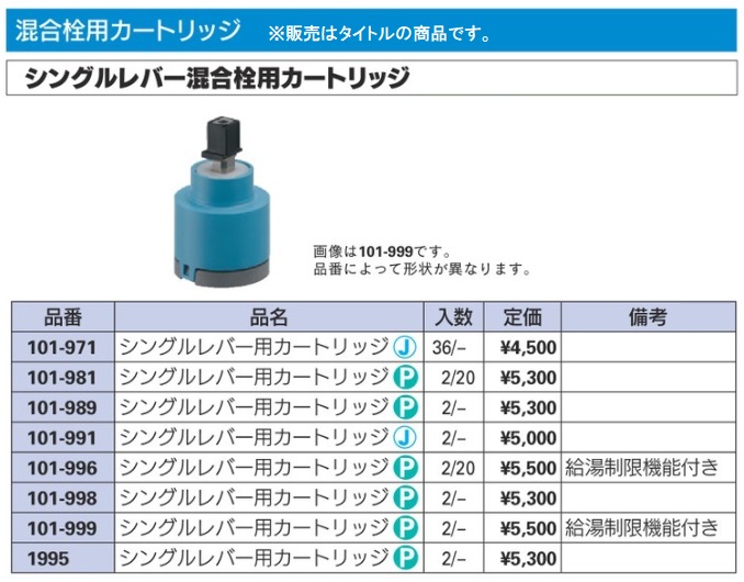 カクダイ KAKUDAIシングルレバー用カートリッジ101-999■説明文●外径50ミリ前後の普及機種に使用●給湯制限機能付き●101-998と互換性ありこの商品はメーカーより取り寄せになります。通常納期、4~7日ですが、メーカー欠品等でご注文をお受けできない場合が御座います。