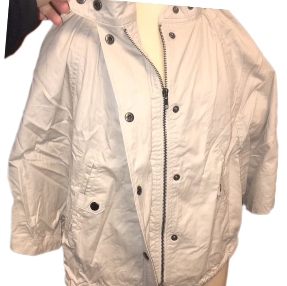 | ■ブランド:ファイブサンク【5cinq】 ■サイズ:M バスト79-87 身長154-162 ■素材:コットン100% フルジップですが、ジッパーを隠せる造りになっています。 袖口にスナップボタンがついているので袖を無くしてフルポンチョにすることもできます。 ※紐の合皮部分が風化し傷んでいます。(写真10枚目参照) ボロボロと合皮が剥がれてきていますので、必要なければ合皮部分を切ってしまった方が良いと思います。 保管の際のシワがあります。 少し汚れがあります。 神経質な方はご遠慮ください。 まだまだ問題なくご使用頂けますが、ご理解頂ける方でお願い致します。 着丈などの採寸は行っておりません。 保管の際の防虫剤臭やタンスの臭い、多少のカビ臭さなど商品によってはあるかもしれません。 取り扱いには十分注意しますが、見落としの難があるかもしれません。 できる限りチェックはしていますが全てのチェックは難しいので、あくまで『古着』ということをご理解頂ける方でお願いします。 イメージと違う、サイズが合わない、わずかなホツレ、織傷、シワ、シミがあるなどの理由による返品・評価下げはご遠慮下さい。 ▽▼▽▼▽▼▽▼▽▼▽▼▽▼▽▼▽▼▽▼▽▼▽▼▽▼▽▼▽▼▽▼▽▼▽▼▽▼▽▼ 画像の色は実際の色と多少違うかもしれません。 一般家庭での保管、現状渡しです。自宅保管品により多少の傷みがあるかもしれません。 取り扱いには十分注意しますが、見落としがあるかもしれません。 極端に細部までこだわる方、神経質な方はご遠慮下さい。 写真で保存状態、商品をよくご確認の上、ご購入ください。 △▲△▲△▲△▲△▲△▲△▲△▲△△▲△▲△▲△▲△▲△▲△▲△▲△△▲△▲△▲ ※袋に入れるだけの簡易包装になります。 ※ゆうパケットの場合、かなり圧縮梱包です。 シワができますので気にされる方はご遠慮ください。 ※宅配便以外の発送は補償無し/時間指定不可です。 ※心配な方は追跡番号のある宅配便をご選択ください。 管理番号 P3G306Y100 | |||||||||||||||||||||||||||||||||||||||||||||||||||||