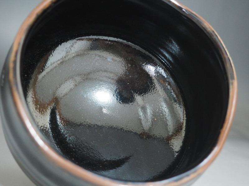 | A4050 秀山窯 加藤秀三 作 天目釉 茶碗 紙箱付 ☆ 茶道具 茶器 抹茶器 抹茶道具 茶懐石 茶事 抹茶碗 陶器 作家物 在銘 陶印 美品 良品 無傷 | ||
