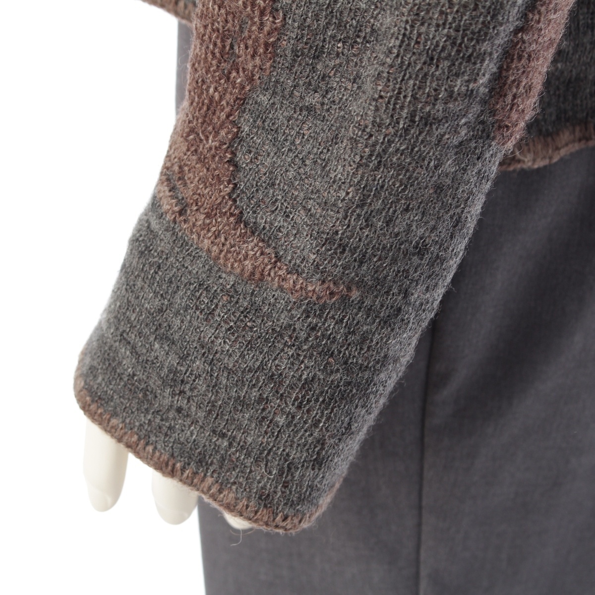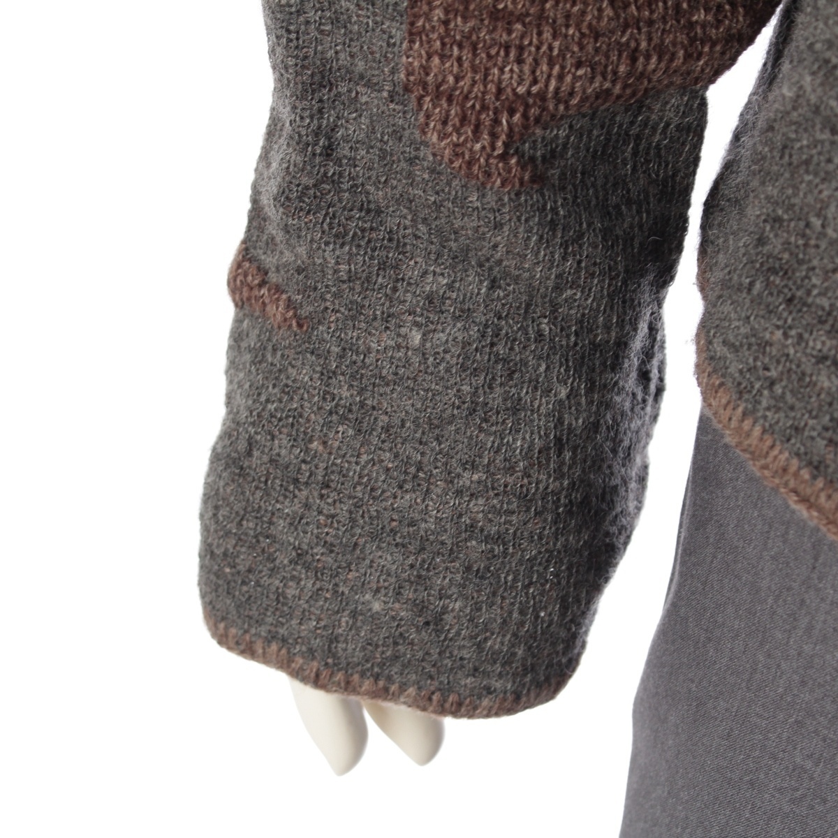 腕、身頃等に毛羽立ち、裾元に型崩れ、