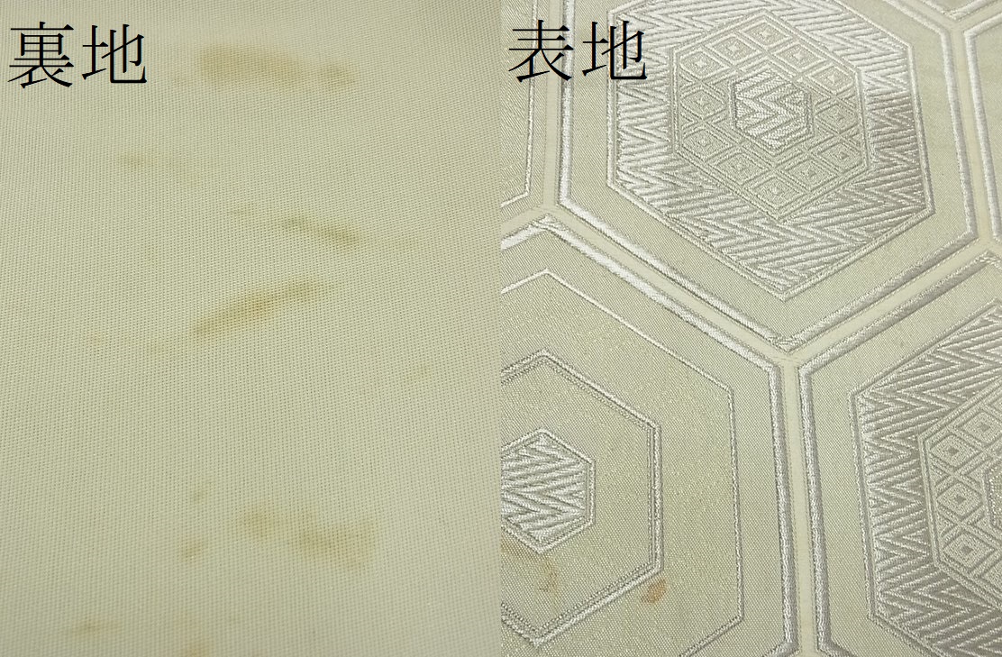| 【正絹・芯なし】 状態は接写画像のように 裏地・表地所々に薄い汚れがございます。 大変上質な逸品になりますので、 ぜひお手入れをされてお召しになられてはいかがでしょうか。 お安く出品致しますので、是非この機会にいかがでしょうか? ※手先・たれ先未かがりですが着用には問題ありません。