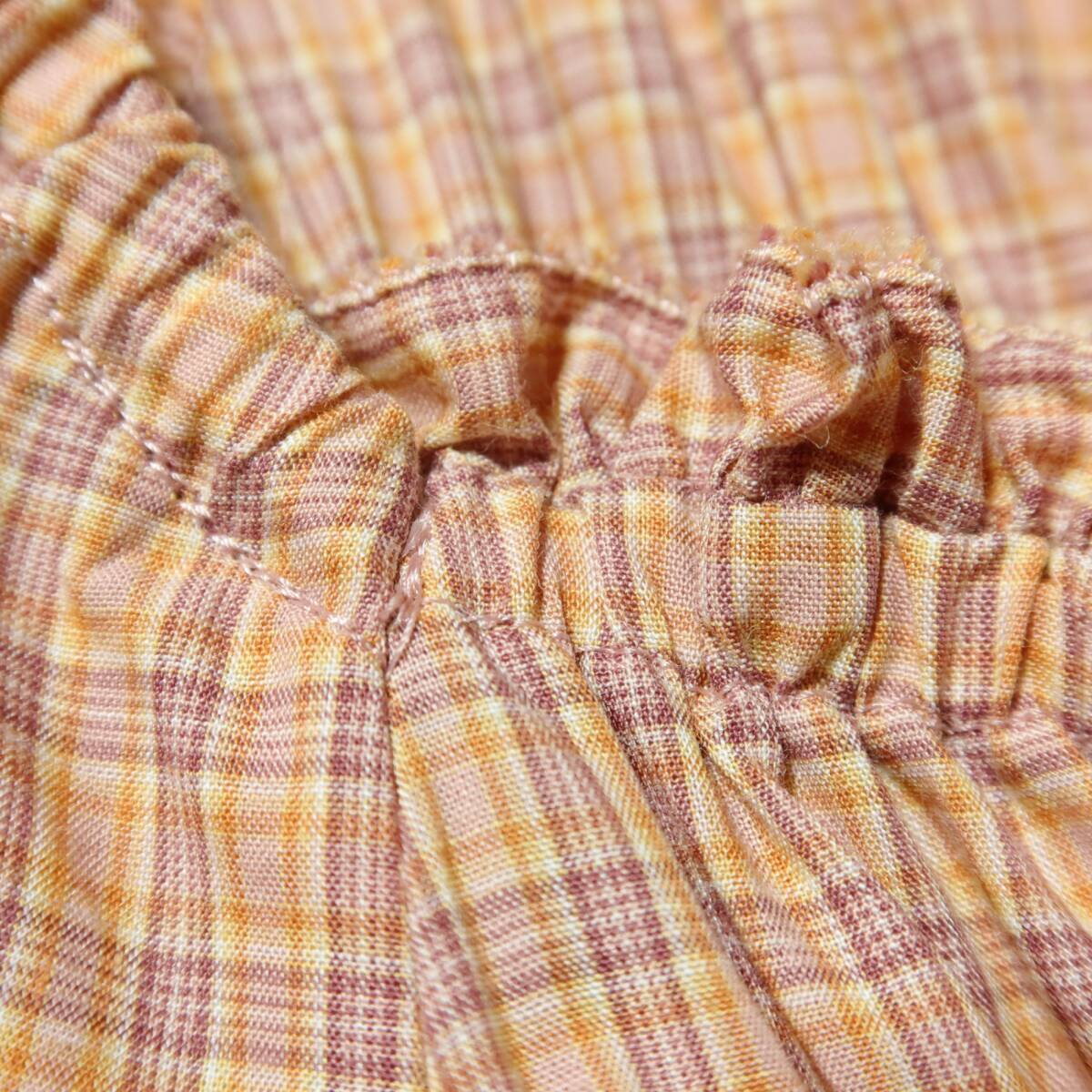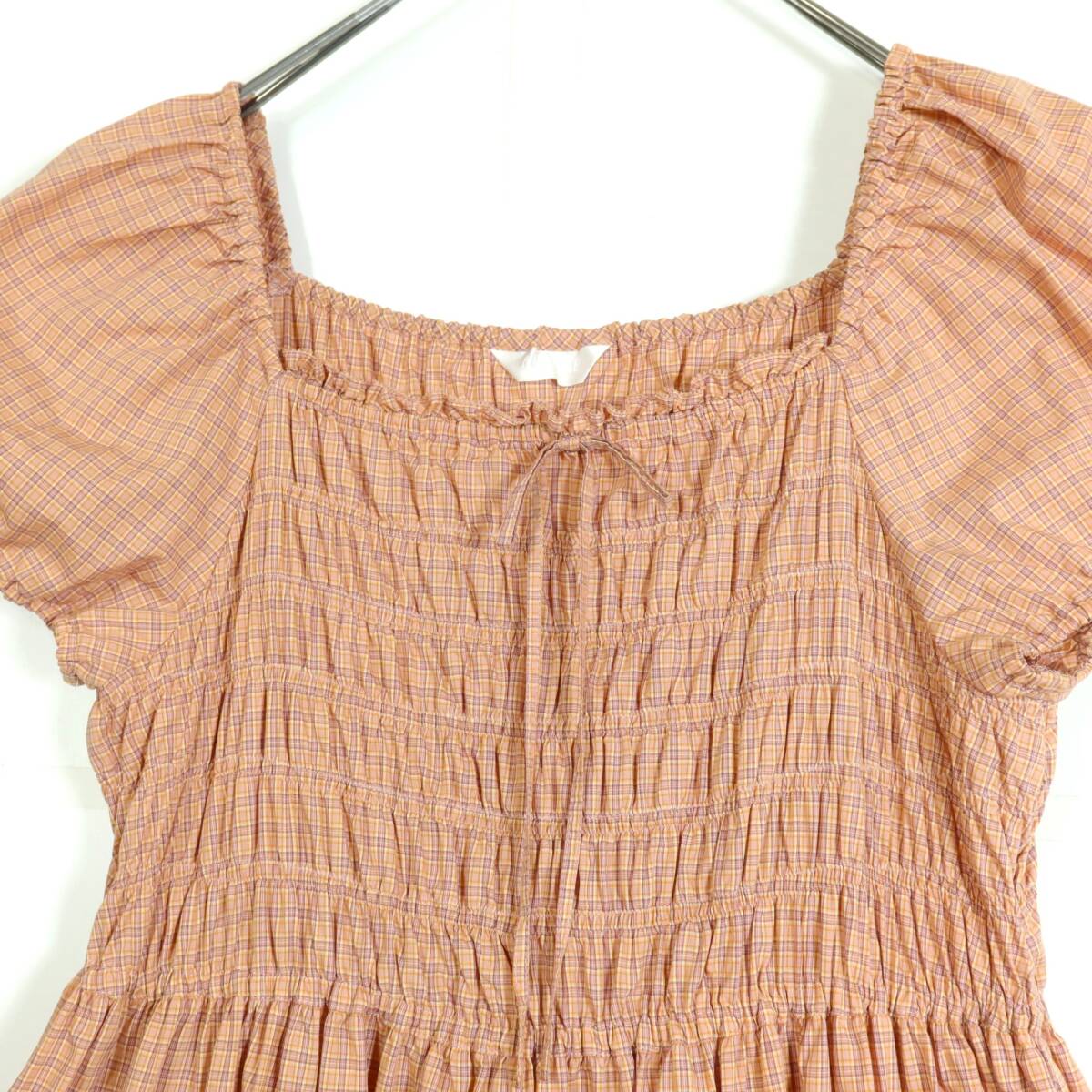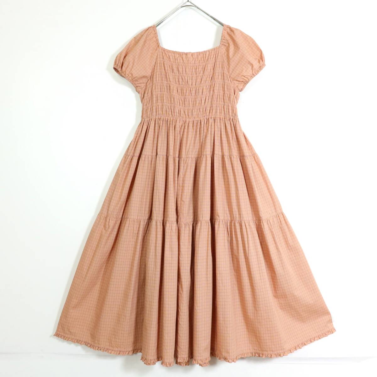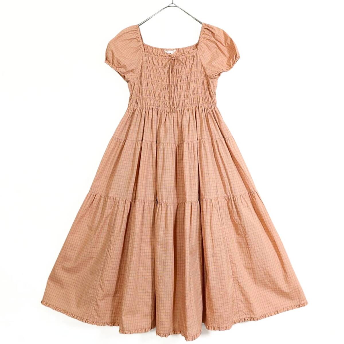 | 商品説明 | 【実寸約】バスト74~総丈112(cm) 【サイズ表記】 なし。実寸をご参照くださいませ。 【素材】 綿100% 【状態】使用感少なめの美品 【デザイン】薄オレンジ×薄紫系 オリジナルチェックの半袖ワンピースです。 バスト周りはゴムシャーリングデザイン♪ 胸元にはリボン付き♪ 襟ぐりと袖口はゴム入りです。 スカートはティアードデザインでギャザーたっぷり♪ これ一枚でもレイヤードでもロマンティックコーデに大活躍するアイテムです |