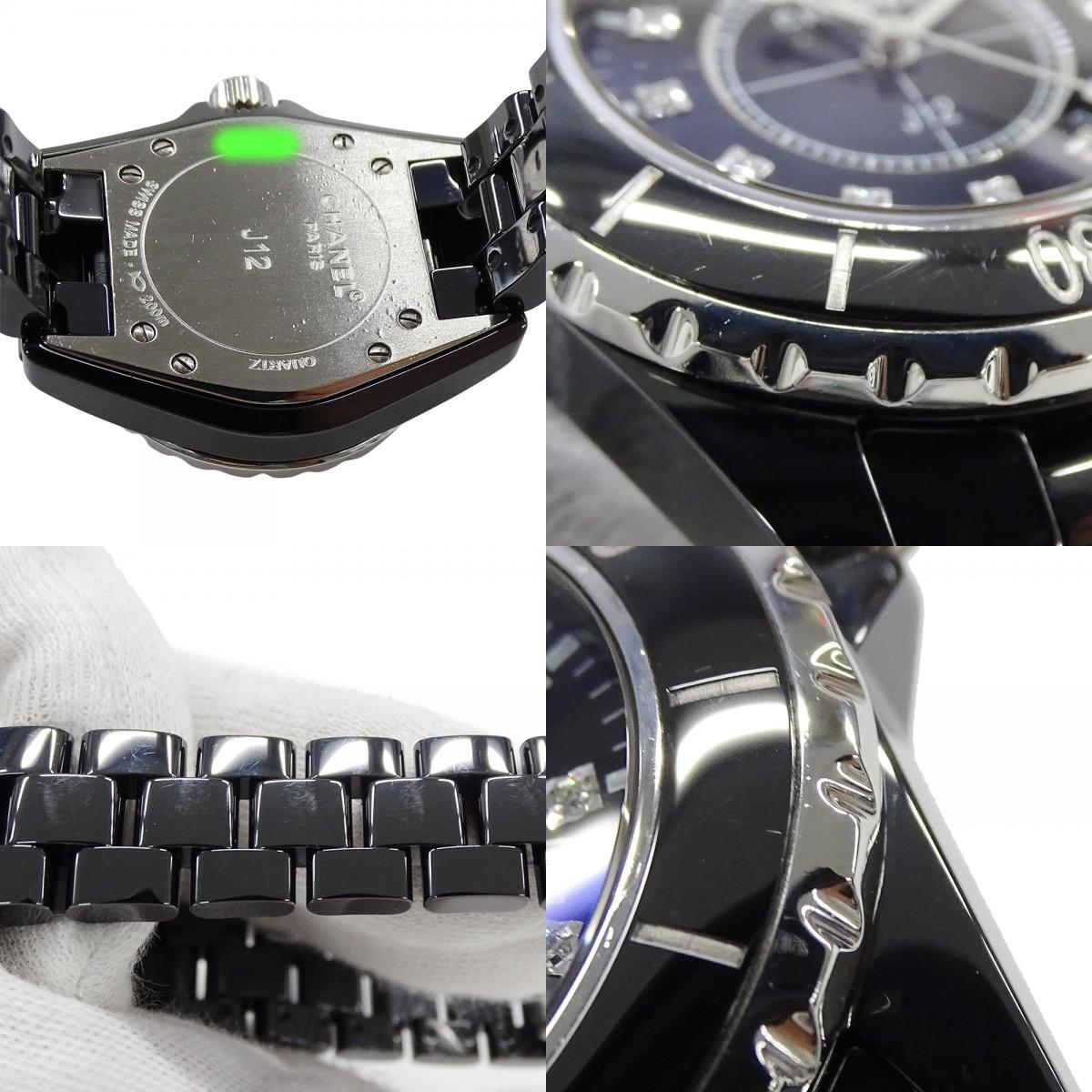 | 商品名 | シャネル CHANEL 時計 レディース ブランド J12 12P ダイヤモンド デイト クオーツ QZ ステンレス SS ブラックセラミック H1625 磨き済み |