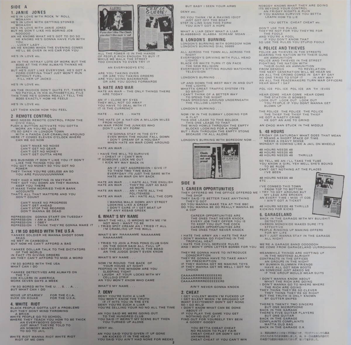 タイトルThe Clash 白い暴動 (1979年・25-3P-67・パンク・PUNK)
