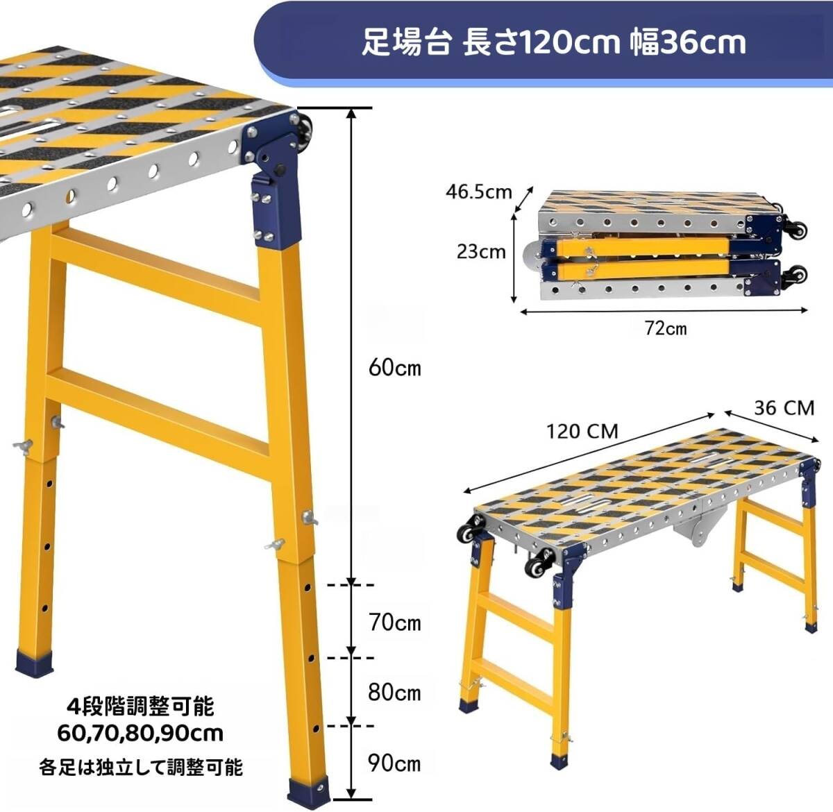 | ★Korekaou 足場台 重型 亜鉛メッキ鋼製 長さ120cm 幅36cm 折りたたみ★ | ||