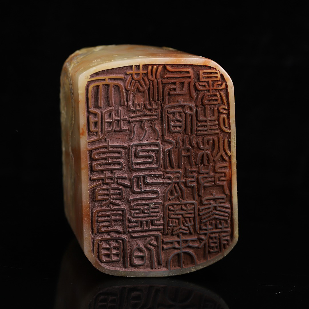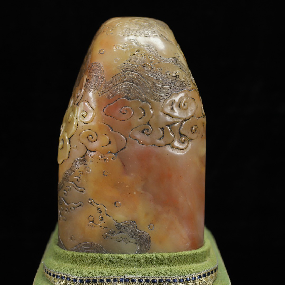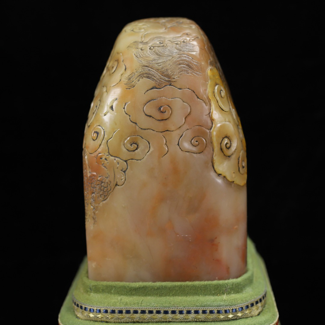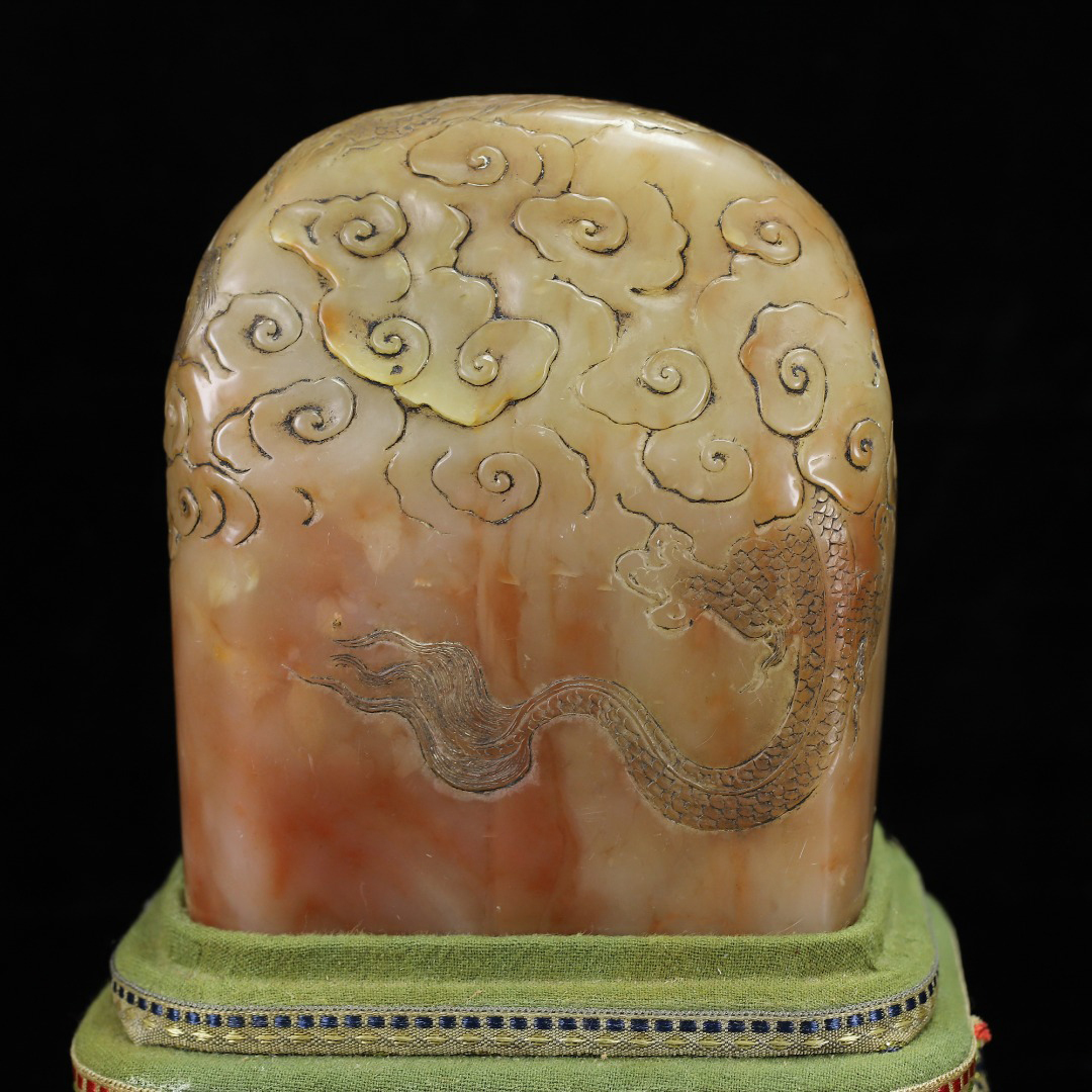 ◆御泓軒◆『清朝時代 寿山石 田黄凍石彫 盤龍紋閑章 印章 丁敬作 箱付』極細工・古賞物・中国古玩・中国古美術