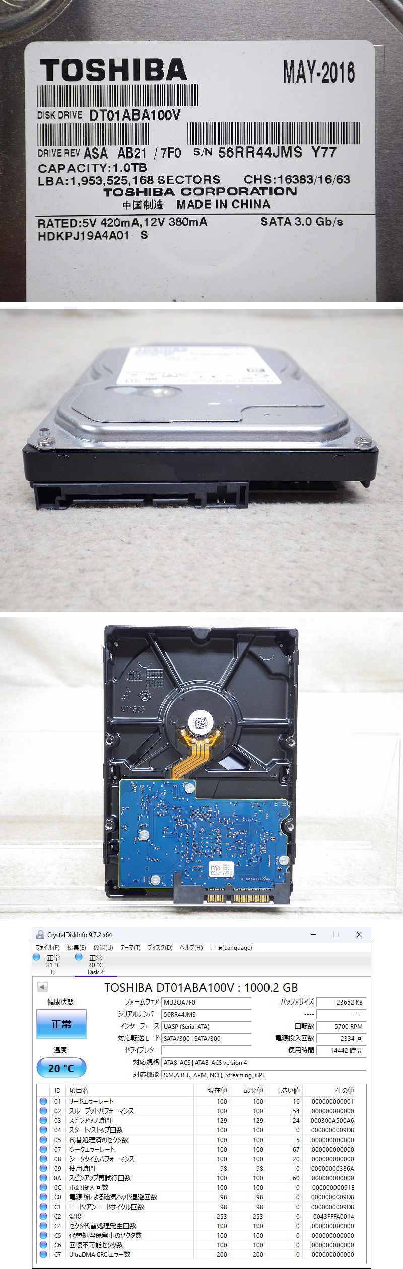 | 商品名 | Kネま2214 東芝/TOSHIBA 3.5インチ SATA 内蔵HDD 1TB DT01ABA100V パソコン周辺機器 PCパーツ ハードディスク |