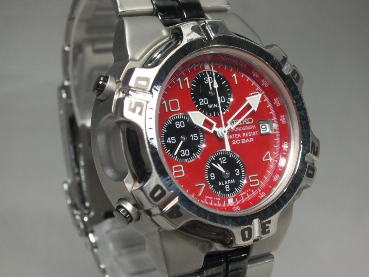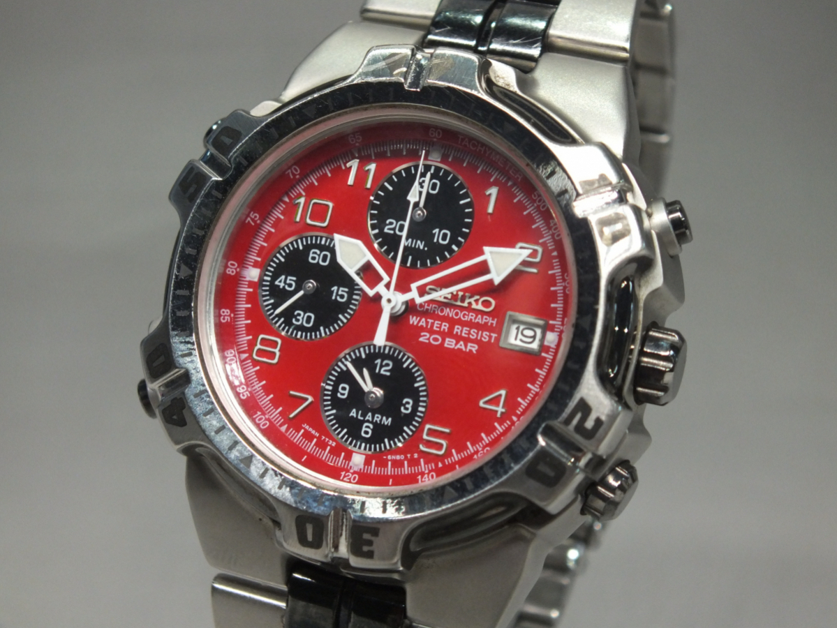 SEIKO/セイコー 7T32-6K60 クロノグラフ 赤文字盤 ケース付き 時計本体美品 | |||