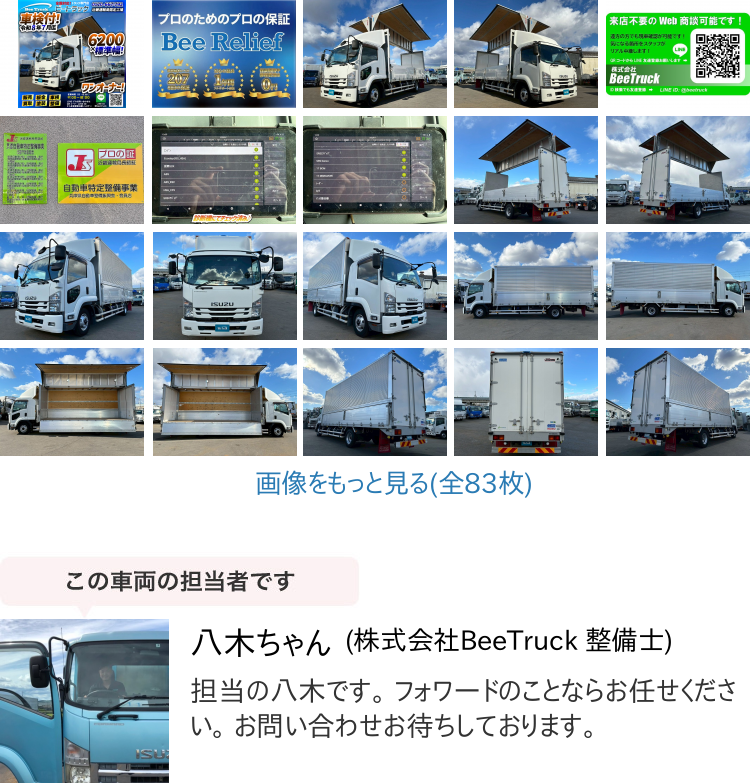 車両状態コメント車両の状態、気になる点に関しましてはお気軽にお問い合わせ下さい!現車確認、テスト走行、画像リクエスト、大歓迎です!https://bee-truck-sale.com/車両所在地〒679-4138 兵庫県たつの市誉田町下沖字久保39-1フリーダイヤル 0120-667-792一般 0791-72-8799営業時間 9:00~18:00(日祝除く)