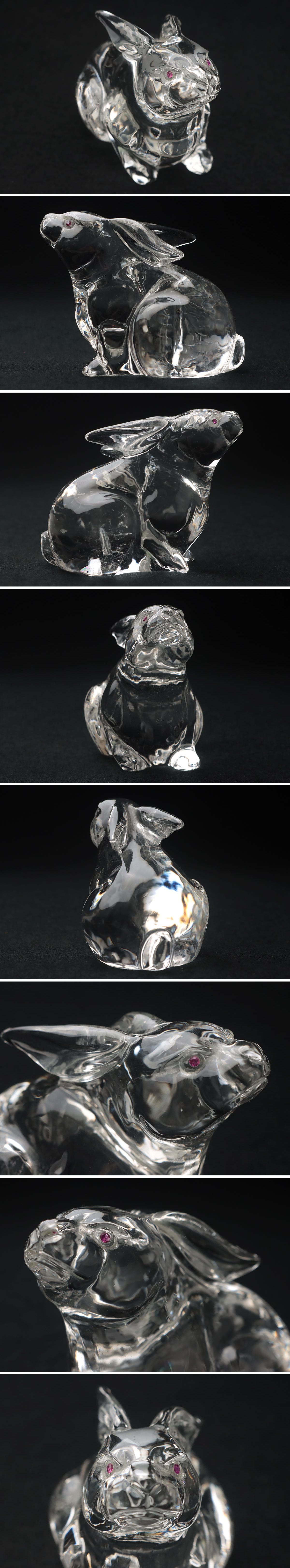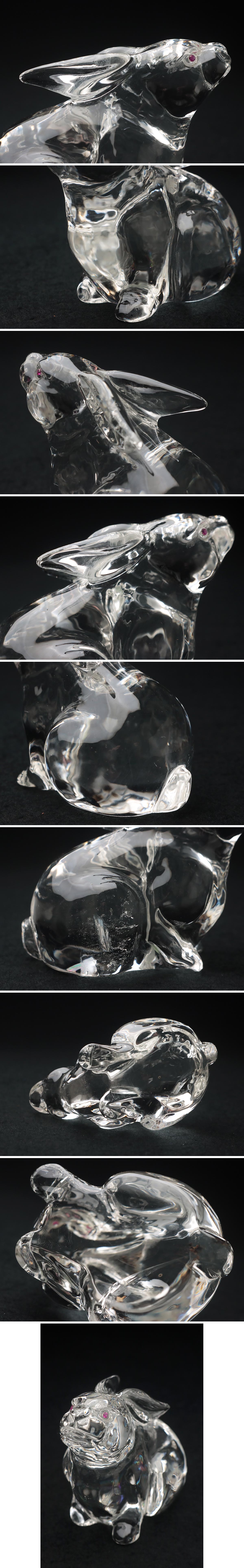 | ◆ 天然水晶彫刻「兎」置物 ルビー玉眼入 幅8cm / 重230g・水晶彫うさぎ・水晶雕兔子・ウサギ 古美術 宝石 ◆