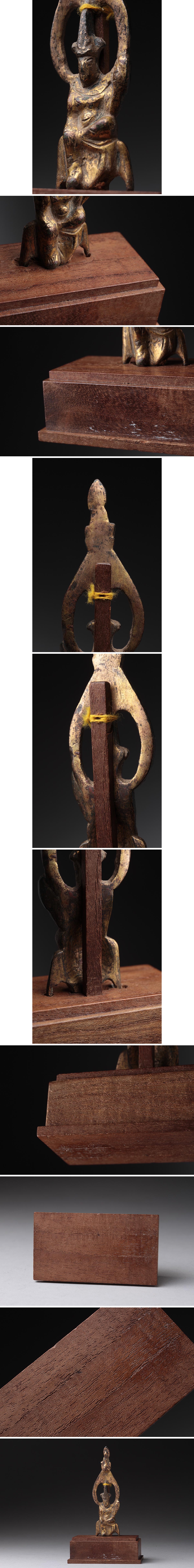 | ◆ 中国美術 隋唐 銅鍍金如来像 木台付 高11cm・金銅仏・小佛・古佛 護身符 仏教古美術 ◆