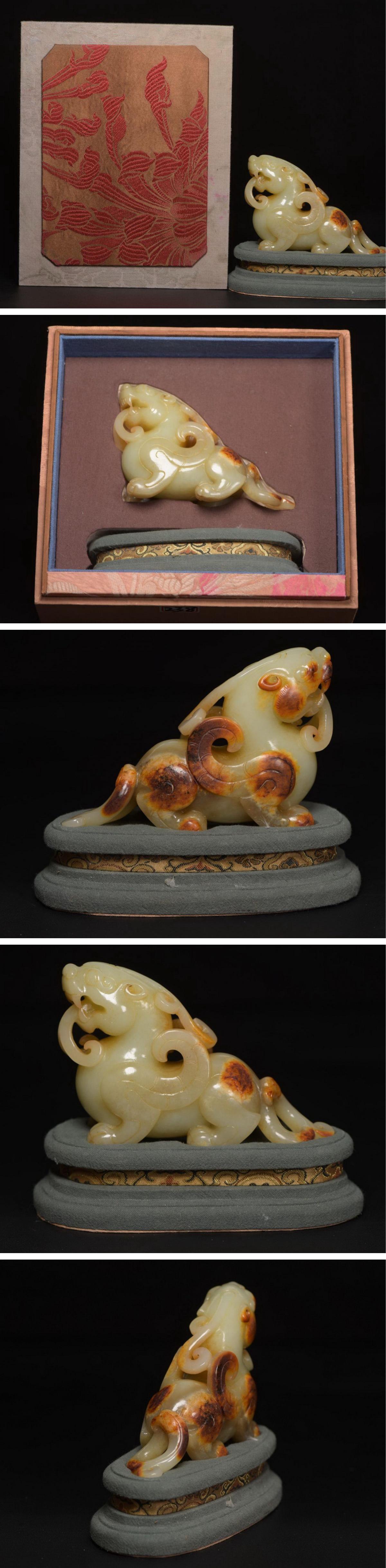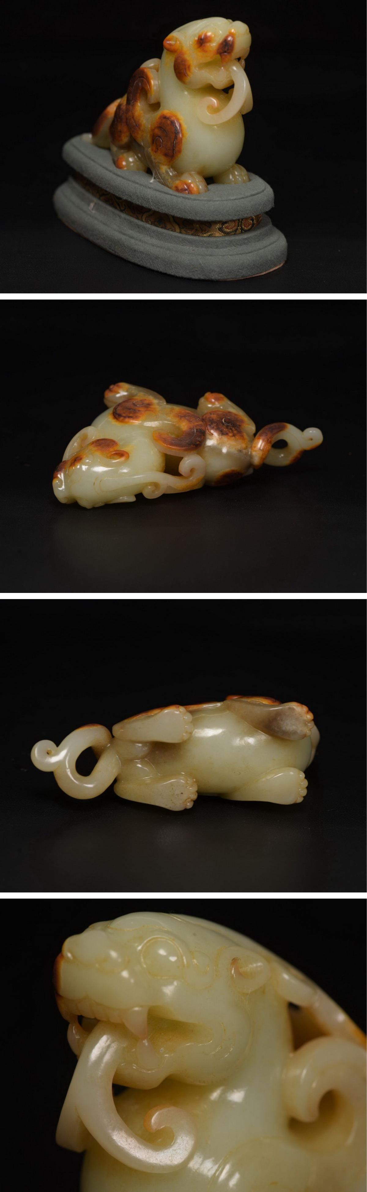 【清】関西某オークション購入 中国伝来 清時代物 和田玉 瑞獣紋彫り物 当時物 時代コレクション8L1-AY3