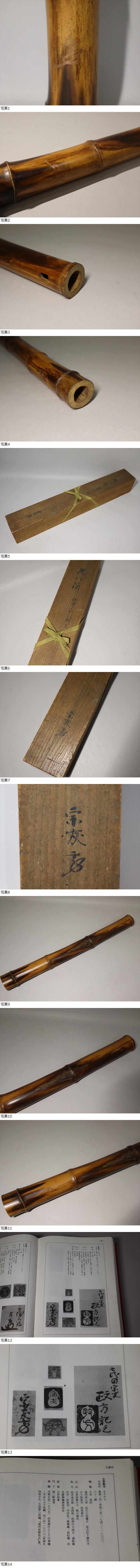 作品、箱書き本物保証。遠州流七代小堀宗友在判書付 自作尺八筒竹花入 伏見之竹以作之の名品です。誠に素晴らしい姿形です。状態良好です。貴重な作品で次第も見事であり、大切に伝来されたまさに作品です。