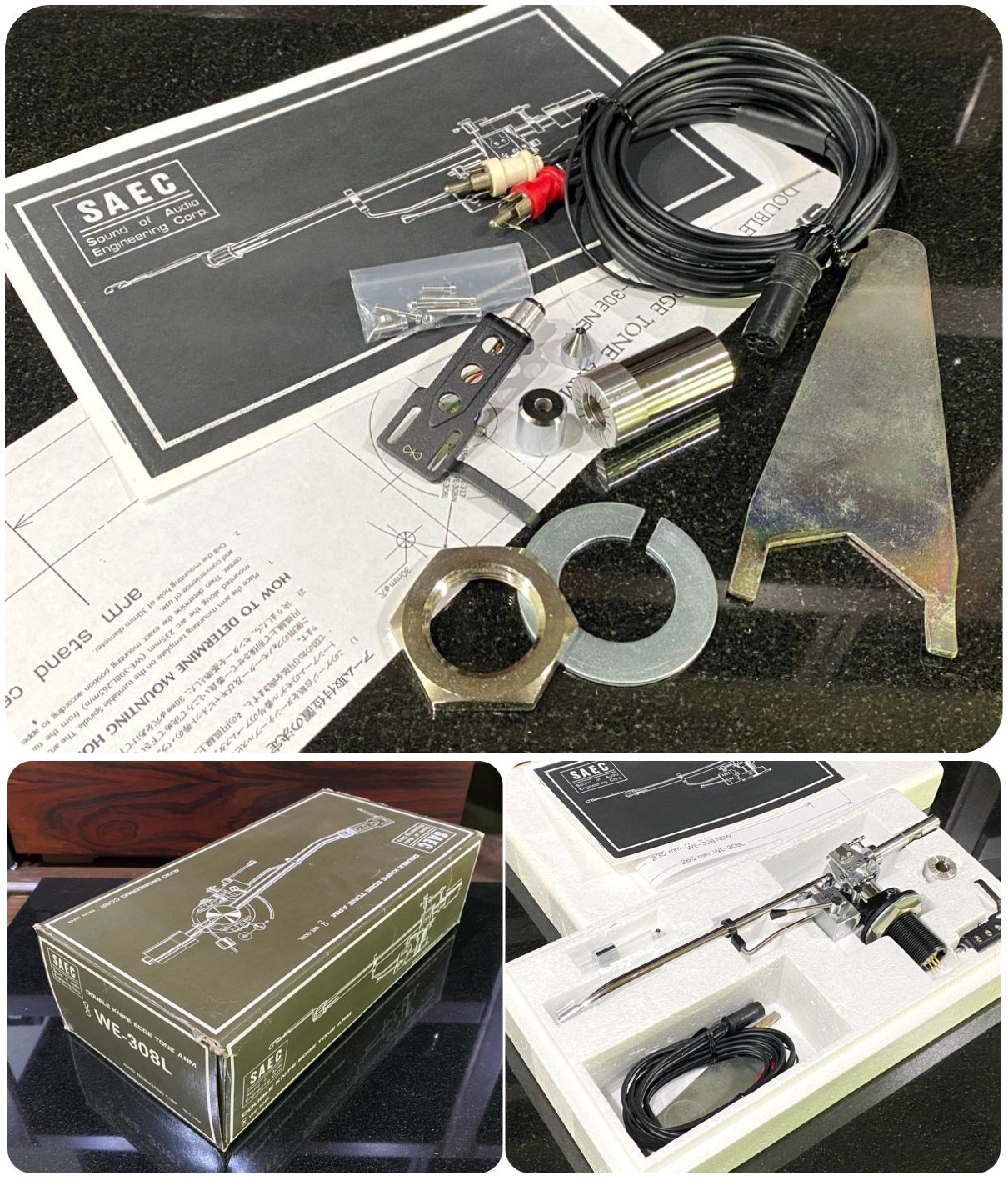 SAEC WE-308L ロングトーンアーム シェル/ケーブル/元箱等付属品フルセット人気のロングアームWE-308L