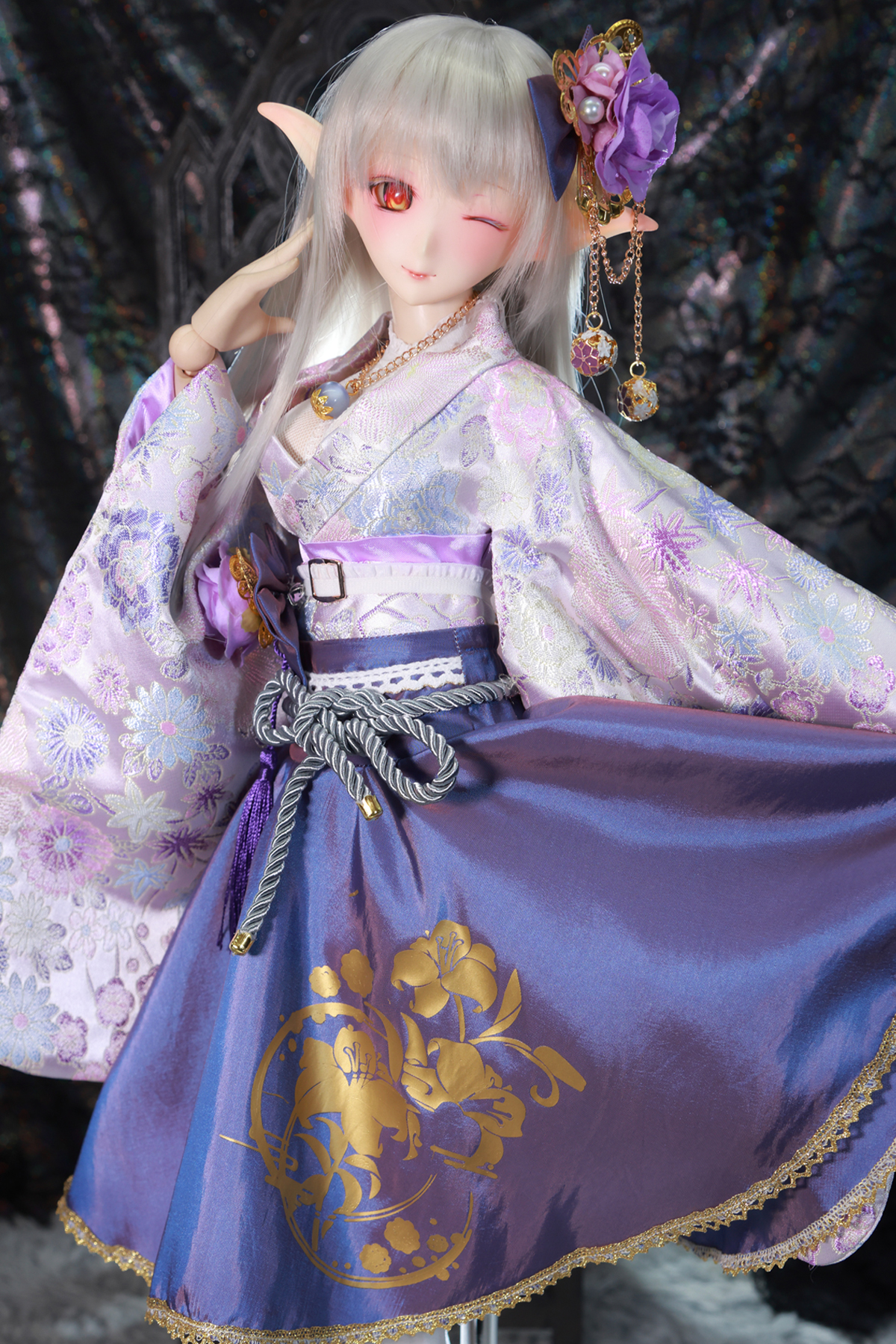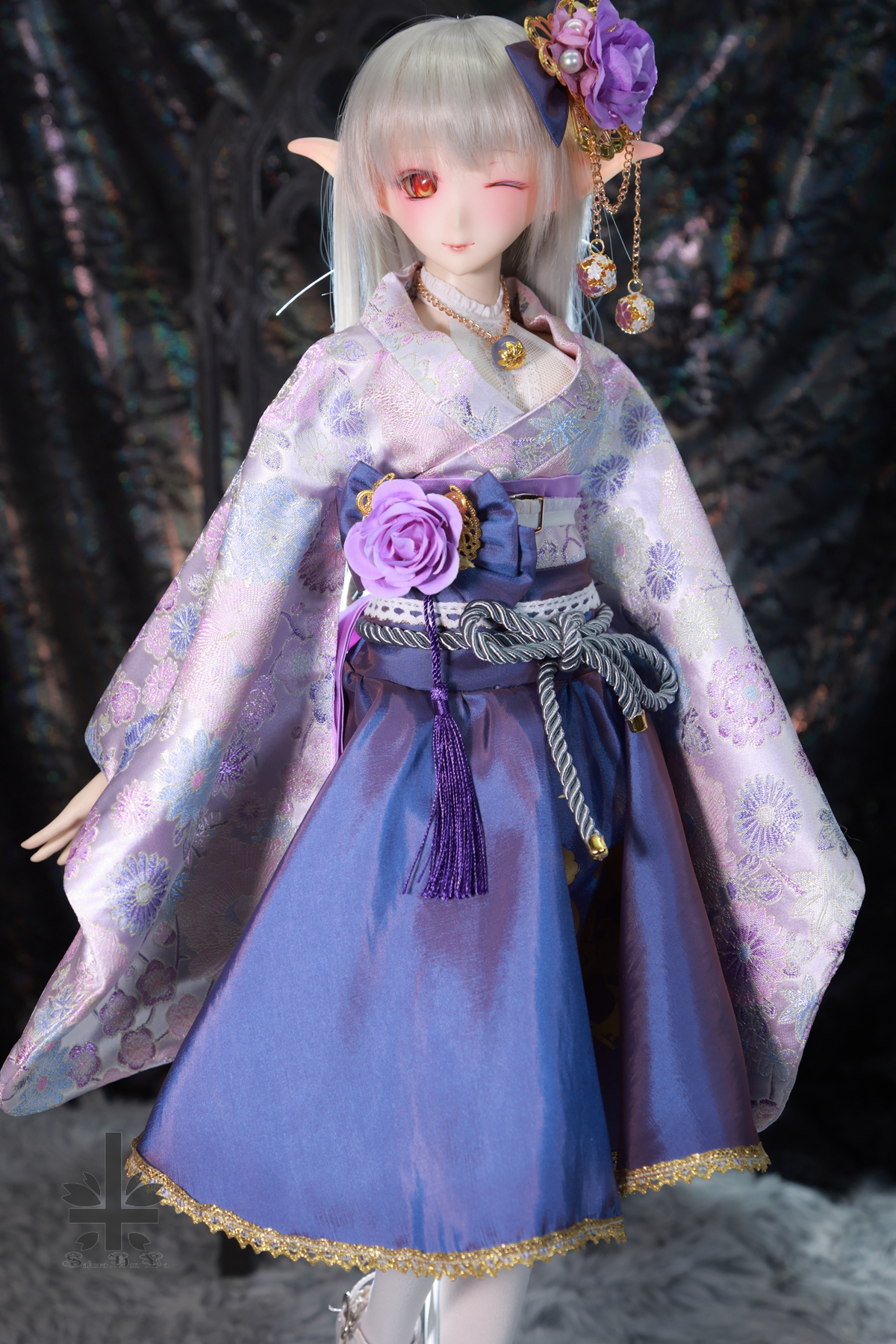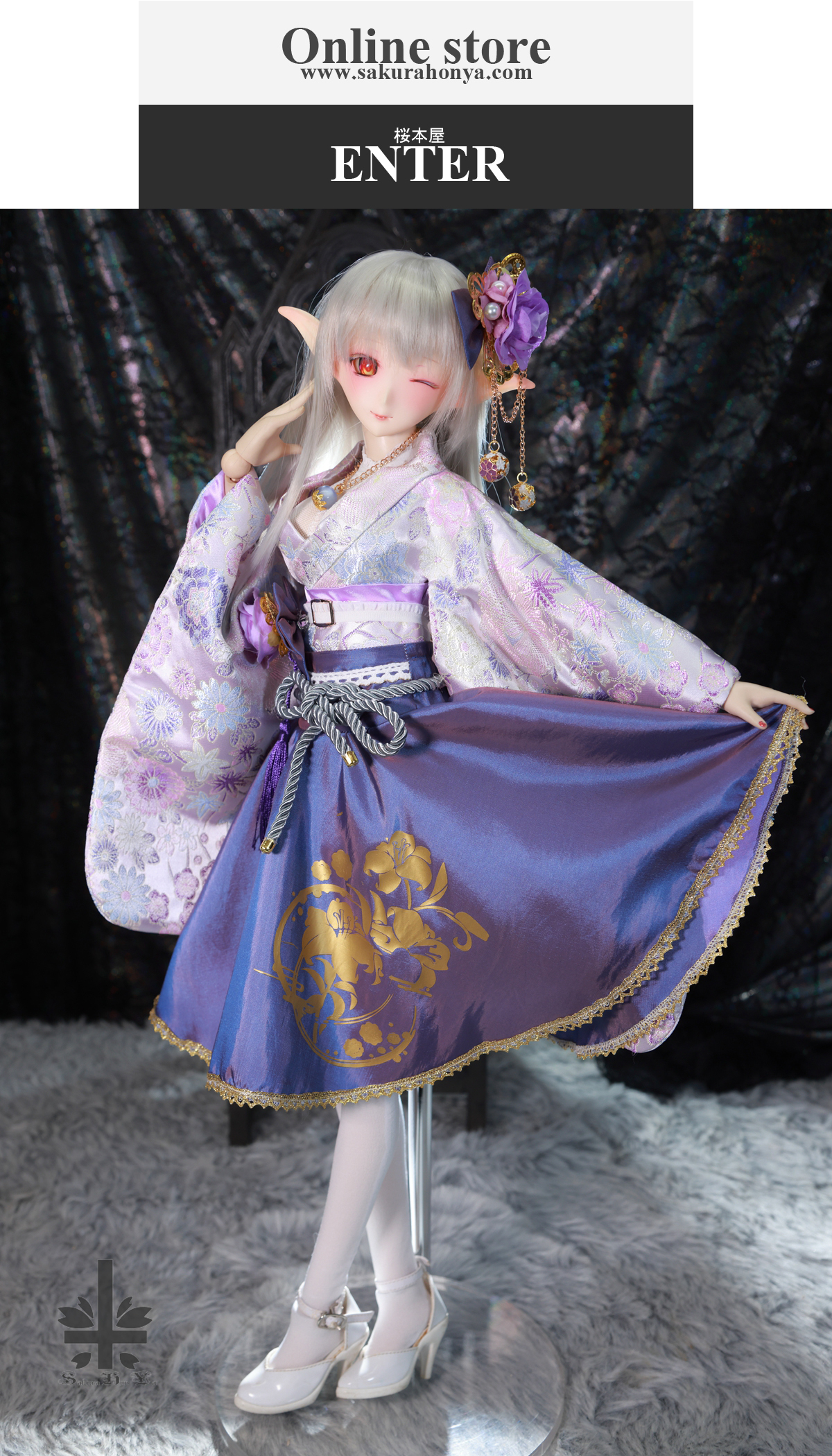| * 商品説明 * ご覧頂き ありがとうございます。 「桜本屋」 華麗短い和服《薫香》(絹織物) ★★ONE OFF★★ ドルフィードリーム DDdy/S/M/L胸 どちらにも着せ付けていただけます。 セット内容:
