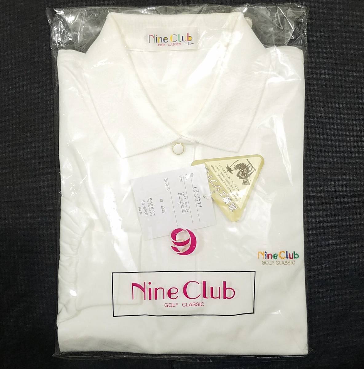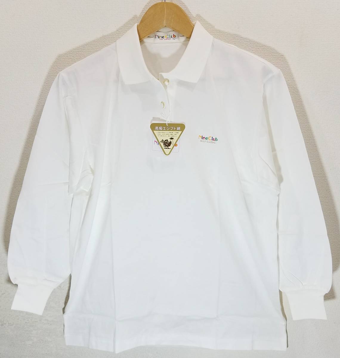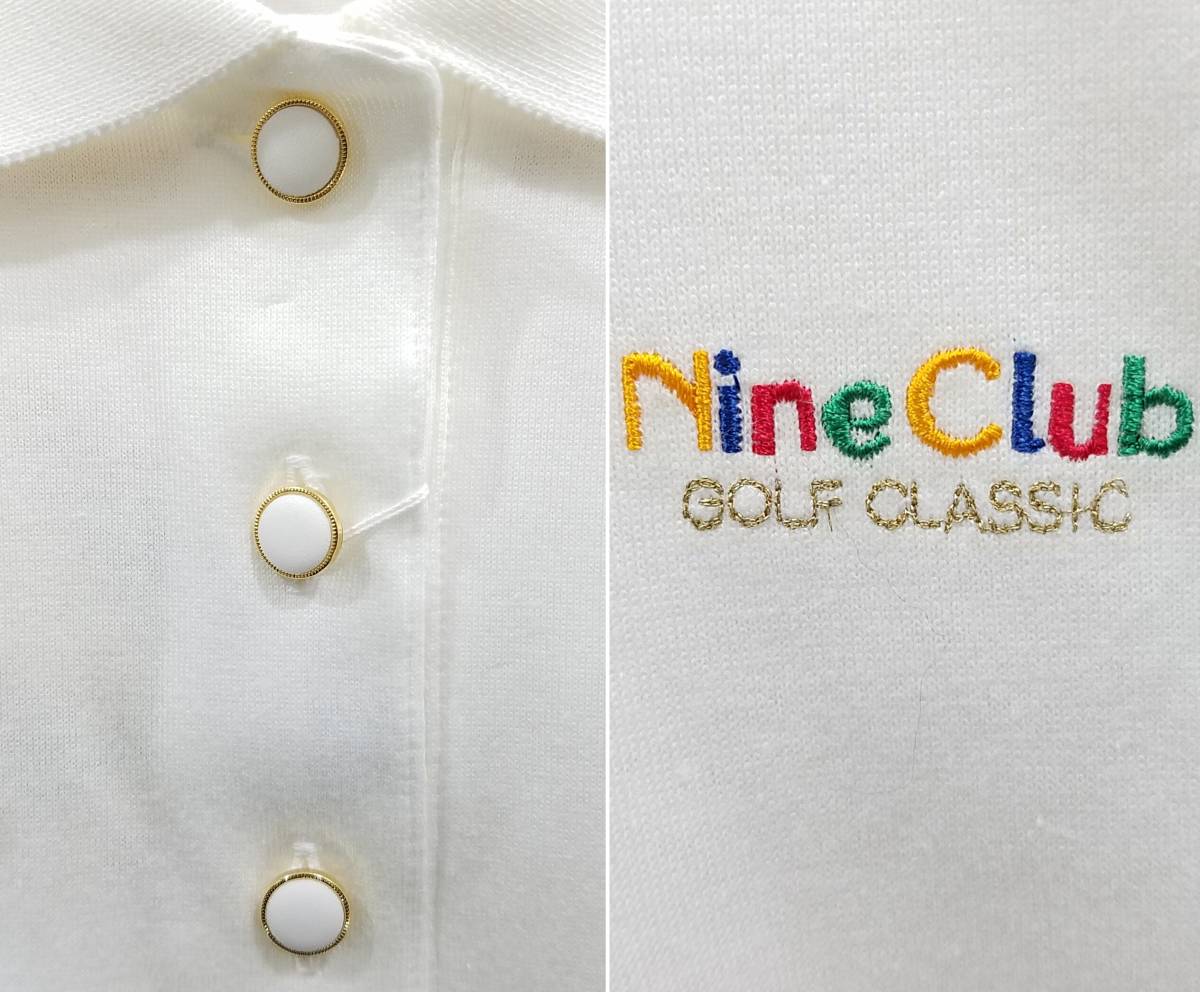 ヴィンテージ品 訳あり新品(デッドストック) NINE CLUB ゴルフ クラシック 長袖シャツ レディースLサイズ 日本製 ホワイト ナインクラブ 白 ポロ襟 GOLF CLASSIC 高級エジプト綿 薄手シャツ ロゴ刺繍入り 吸汗性(通気性) 伸縮性 耐久性 送料430円~ | ||||||||||||||||||||||||