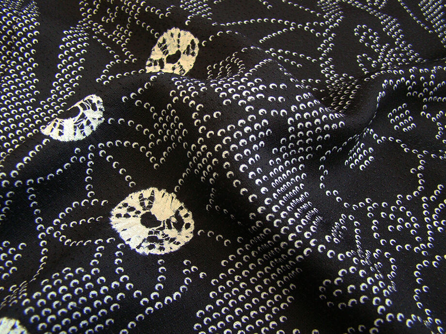 | ちょっと一言 | お茶事や暮らしのお洒落着に重宝頂ける粋な黒地に絞り入りの素敵な小紋です。 帯や小物次第で個性を演出でき幅広いコーディネートをお愉しみ頂けるかと思います。 |