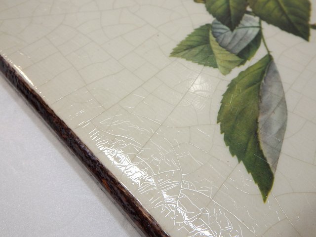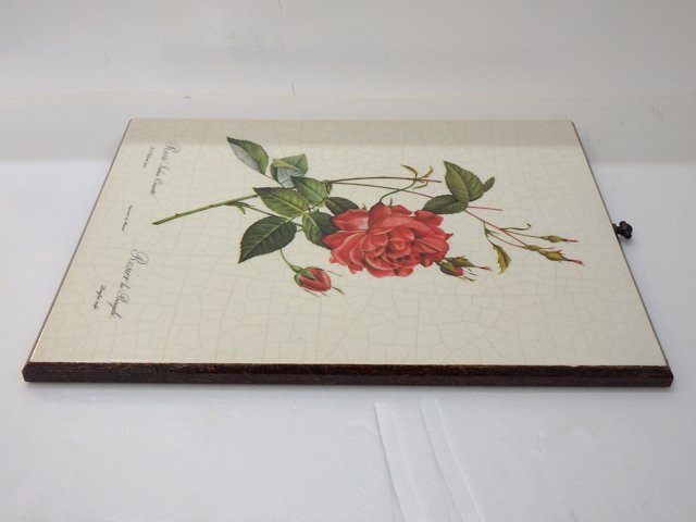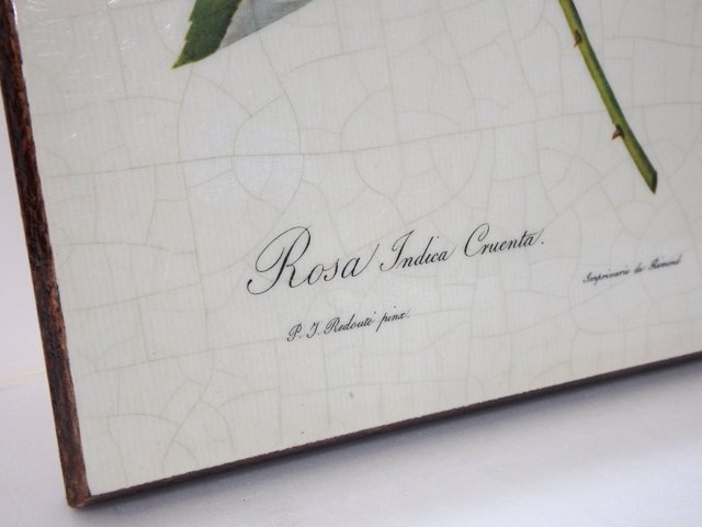 ★ Pierre-Joseph Redoute ピエール=ジョゼフ・ルドゥーテ 「 rosa indica cruenta 」 タイル 壁掛け インテリア アート ビンテージ ★