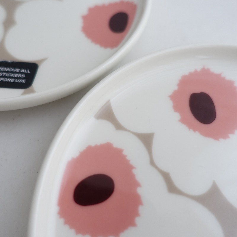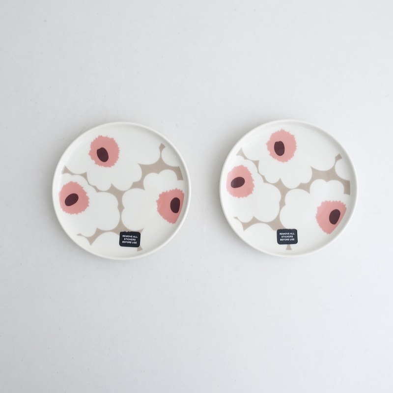 | marimekkoのUNIKKO ウニッコ プレート 13㎝ 2枚セットです。カラーはクレイ×ホワイトでmarimekkoを代表するケシの花がモチーフのウニッコ柄です。 |