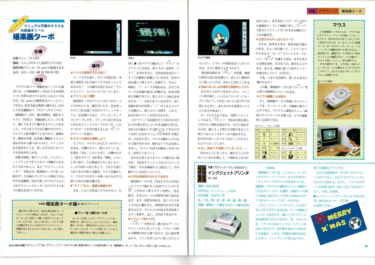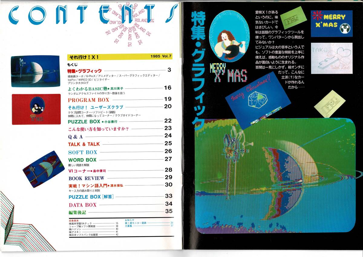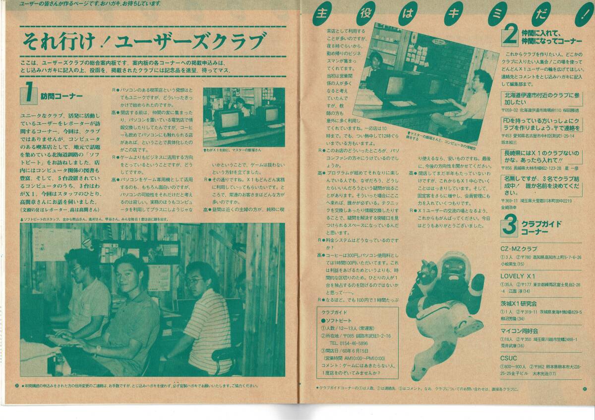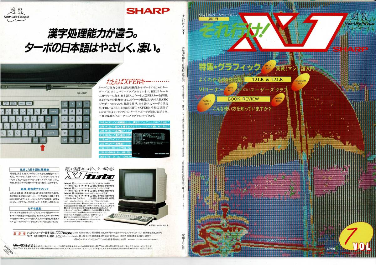 それ行け!X1Vol. 7,1985_昭和60年10月 1日 隔月刊,BASIC塾 高川美子,畠中兼司,小谷善行,清水保弘 発売日 1985_昭和60年10月 1日 隔月刊 発行 シャープ 大きさ A4 バックナンバー申込用紙,アンケートハガキ付 X1コミュニケーションマガジン 表紙 コンピューターグラフィック それ行け! X1 1985 Vol.7 もくじ 特集・グラフィック 3 嬉楽画ターボ / G-Pro.X / アニメディター / スーパーグラフィックエディター /InkPot / WIRED 3D / ビジタイザー プリンタカタログ よくわかるBASIC塾 ●高川美子 16 ランダムアクセスファイルの作り方~数値を扱う PROGRAM BOX 19 それ行け! ユーザーズクラブ 20 クラブ訪問コーナー・ソフトビート (釧路) 仲間に入れて、 仲間になってコーナー / クラブガイドコーナー PUZZLE BOX ●小谷善行 22 こんな使い方を知っていますか? 23 Q & A 24 TALK & TALK 25 SOFT BOX 26 WORD BOX 27 難しい用語を解説 VIコーナー ●畠中兼司 28 BOOK REVIEW 29 実戦! マシン語入門 ●清水保弘 30 キー入力の読み取りと判別 PUZZLE BOX [解答] 33 DATA BOX 34 編集後記 35 広告目次 (株)高木学園 OAテック 15 シャープ(株)ソフト開発部 快走 X1 38 (株)ハドソン 40 (株)アスキー 41 (株)日本ソフトバンク出版部 42 お知らせ 第1期モニター発表 26 大募集 37 34ページ 編集後記 古本です。 神経質な方の入札はご遠慮ください。 背表紙の一部(ホッチキス部分)や本の中等をセロテープで補修している本もあります。 経年による劣化(すれ、ヤケ、シミ、折れ、小さい破れ、汚れ等)があります。 落書き、ページ割れ,ページ抜け、見落とし等が、あるかもしれません。 気になる点などあれば、事前に質問して下さい。 この商品の発送後は、クレーム、返品は、お断り致します。