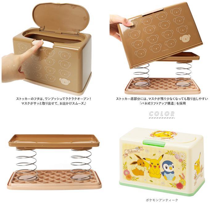 | 商品説明 | ・・花粉症の季節や風邪の感染対策に大切なマスクを可愛く収納できる!キュートなキャラクター・抗菌マスクストッカー♪ ・ストッカーのフタは、ワンプッシュでラクラクオープン!マスクがサッと取り出せて、お出かけスムーズ♪ ・普通サイズの不織布マスクなら約50枚、たっぷり収納可能。(※マスクの仕様、サイズによっては収納できない場合もございます。) ・ストッカー底部分には、マスクが残り少なくなっても取り出しやすい「バネ式リフトアップ構造」を採用。 ・抗菌効果のある銀イオンを練りこんだ素材を使用しているので、毎日着用するマスクの収納に最適。(※すべての細菌の増殖を抑制するものではありません。) ・ポケモンやスーパーマリオ、くまのがっこうなど、男の子も女の子も大好きなキャラクターたちが勢ぞろい!ポップ&カラフルなマスクケースで、お部屋がほっこり優しい雰囲気に。 |
