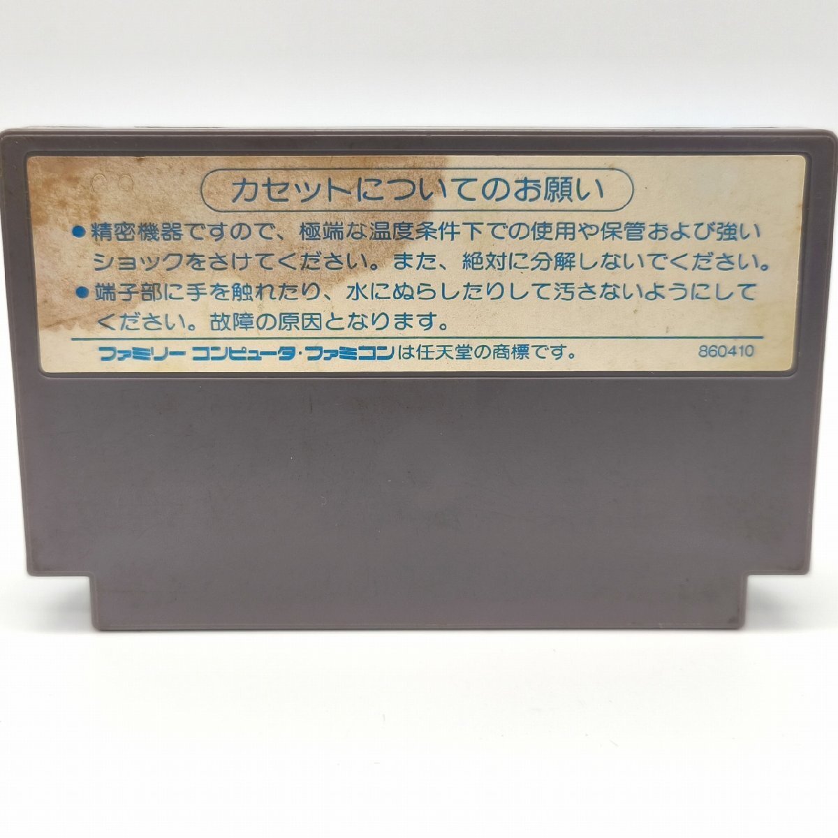 正常動作確認済、カセットのみ、状態ランク:D 商品は画像に写っているものが全てです。ファミコン互換機にてテストを行い正常動作を確認しました。カセット外観には劣化が見受けられます。その他状態は画像をご確認ください。※最後の画像は動作確認中のものです。ファミコン本体とモニターは付属しませんのでご了承ください。| 商品の状態ランクについて | ||