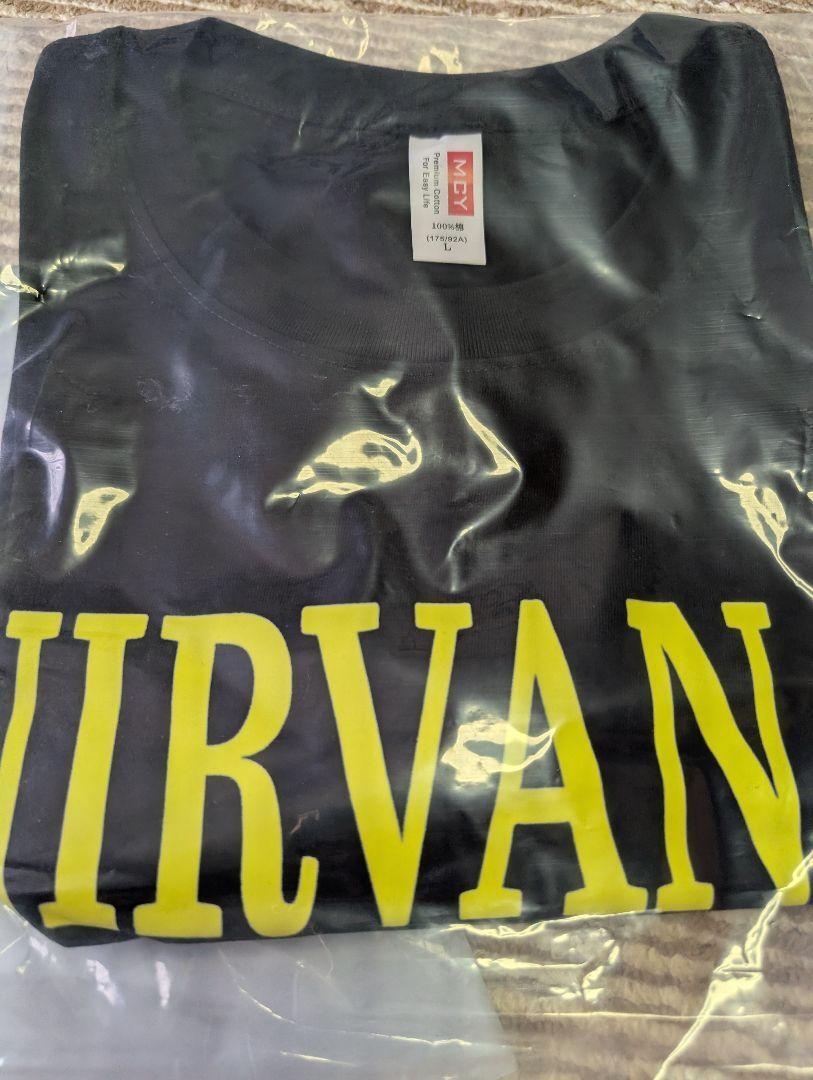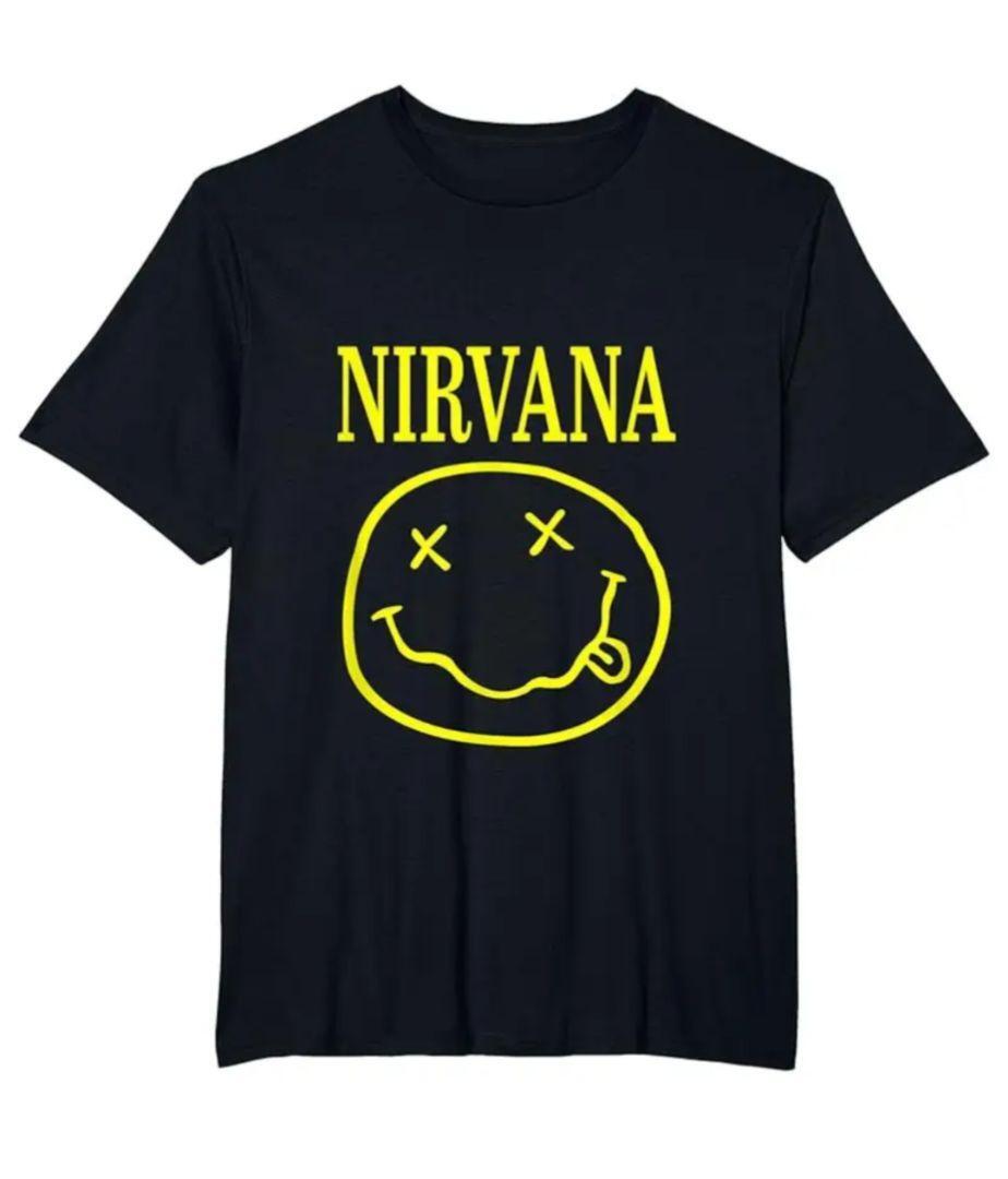 NIRVANAのロゴとスマイリーフェイスが特徴的な黒のTシャツ。| 出价者 | 信用 | 价格 | 时间 |