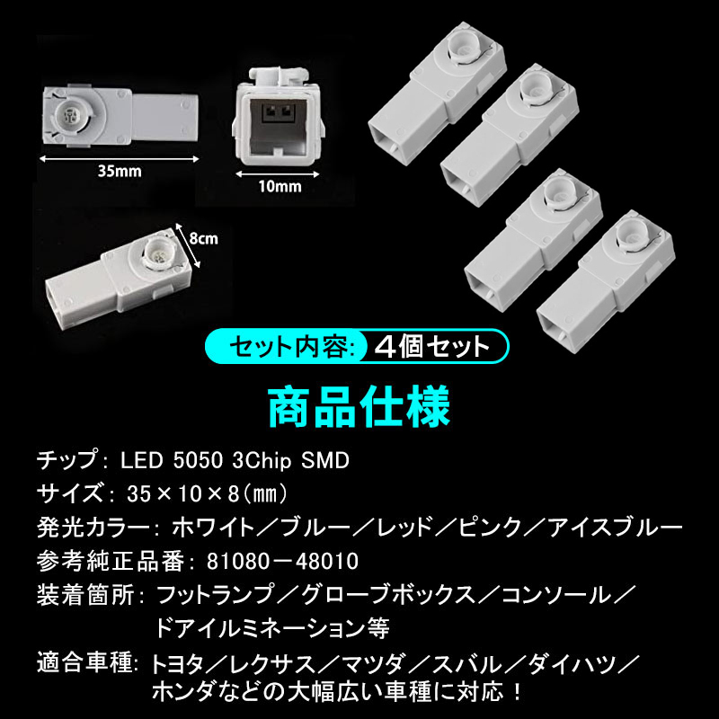 | 4個 フットランプ LED インナーランプ 車内 ライト led インテリア イルミネーション ピンク Y1198 | |