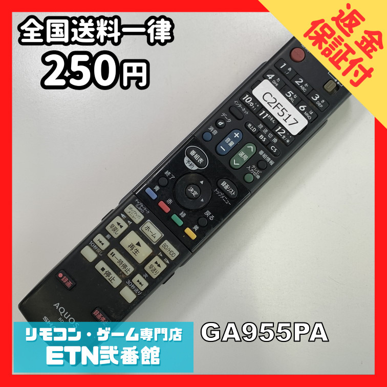 C2F517 【送料250円】 TV リモコン / シャープ SHARP GA955PA 動作確認済み★即発送★ テレビ
