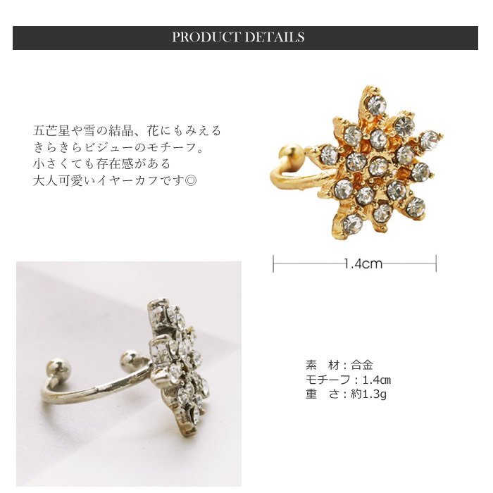 | 五芒星 五角形 結晶 花 雪 イヤーカフ イヤリング レディース クリップ 片耳用 | ||||